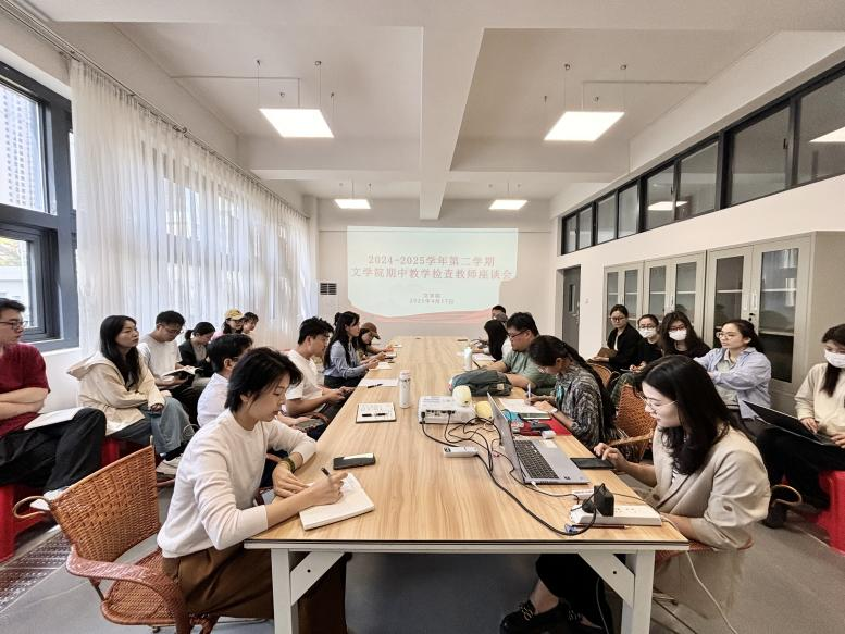 为深入贯彻落实学校期中教学检查工作部署,进一步倾听教师心声,关心关爱教师成长,促进教师之间的团队合作和凝聚力,4月17日上午,我院在南校区体育馆105召开了2024-2025学年第二学期期中教学检查教师座谈会。文学院院长黄宇鸿,常务副院长梁镨文,党支部书记岳莹,教学副院长蔡森,学工副院长裴景旺,汉语言教研室主任姜玮,汉语国际教育教研室副主任李雪及文学院全体教师参加本次座谈会。
