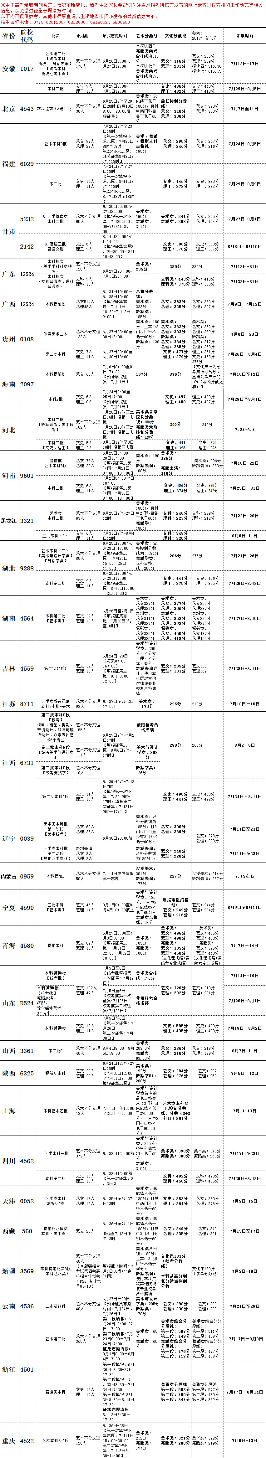 2018年 分省录取信息一览表