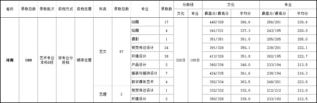 2018年 河南艺术类录取情况
