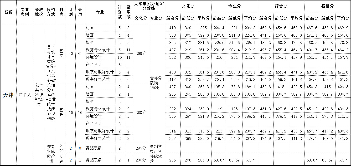 2019年 天津录取情况