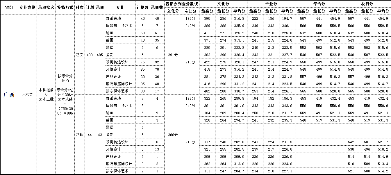 2019年 广西录取情况