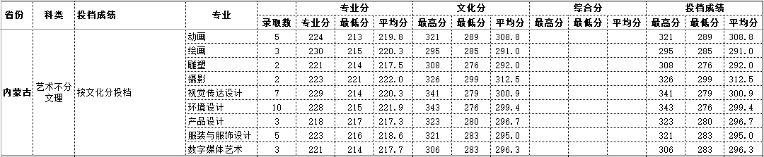 2020年内蒙古 艺术类录取情况