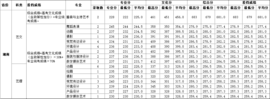 2020年湖南 艺术类录取情况