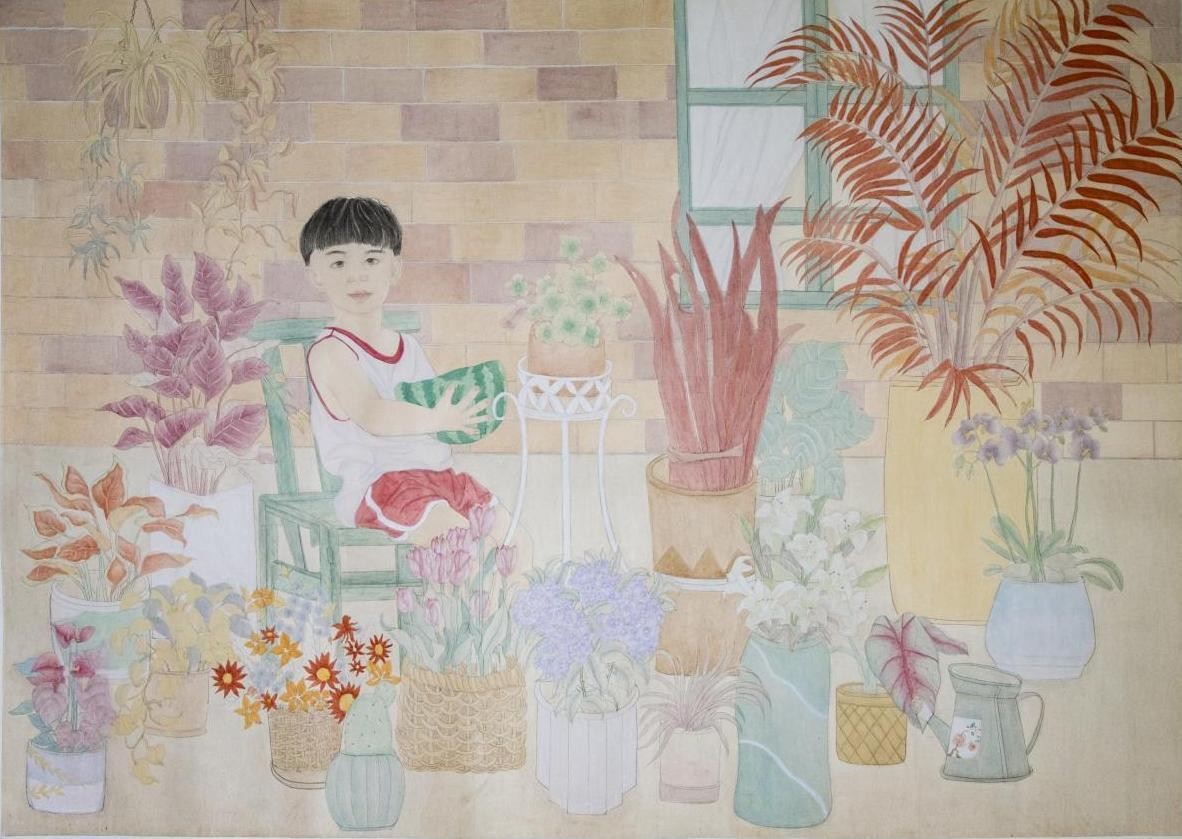 《静》 周俞均 水彩画 77cmx95cm 2023年