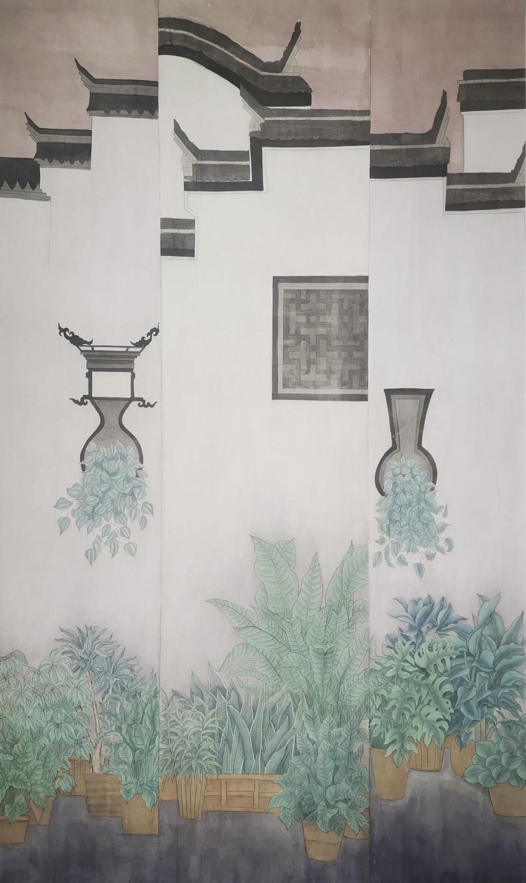 《花果》 张学丽 工笔重彩 180cmX70cm 2023年