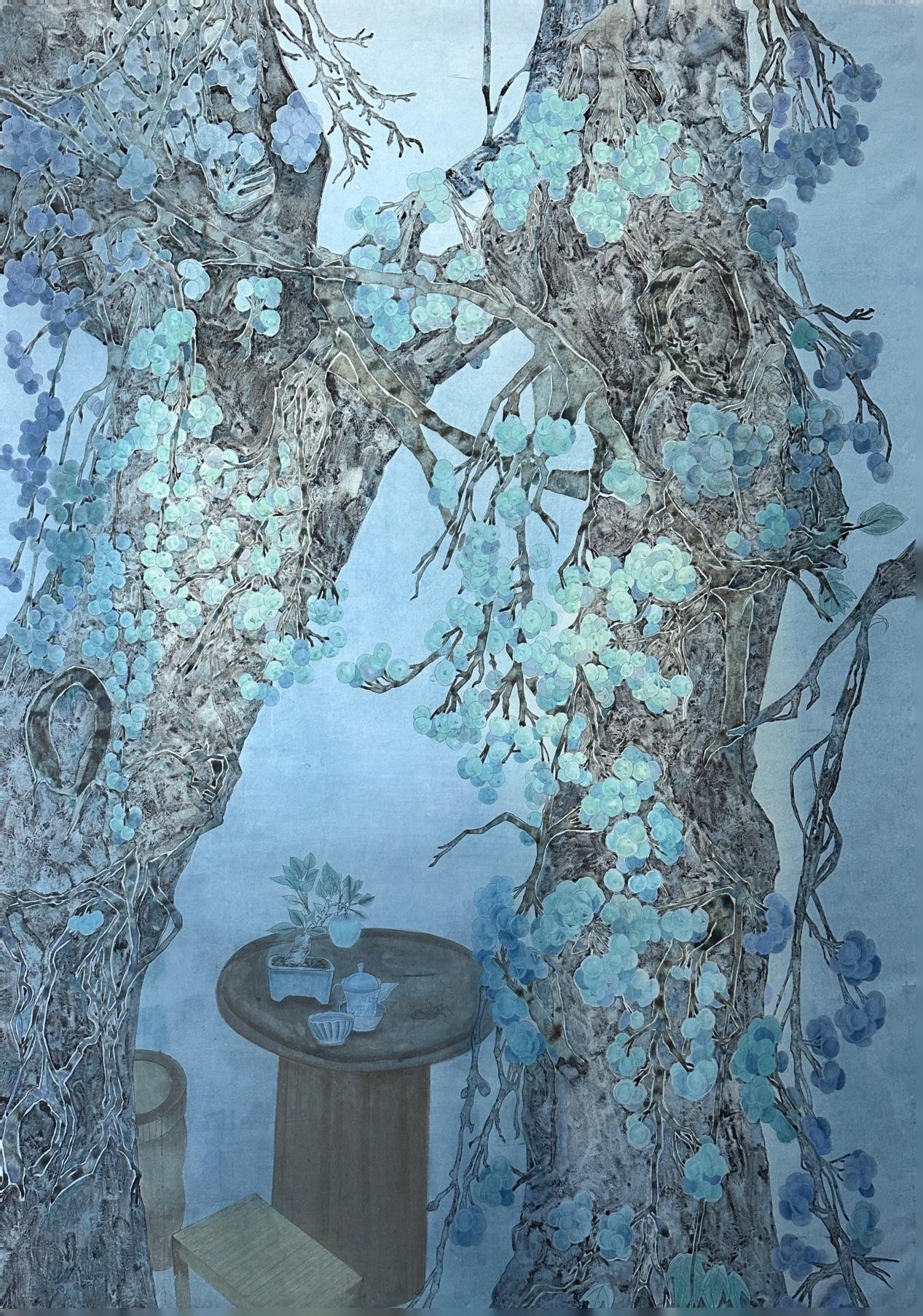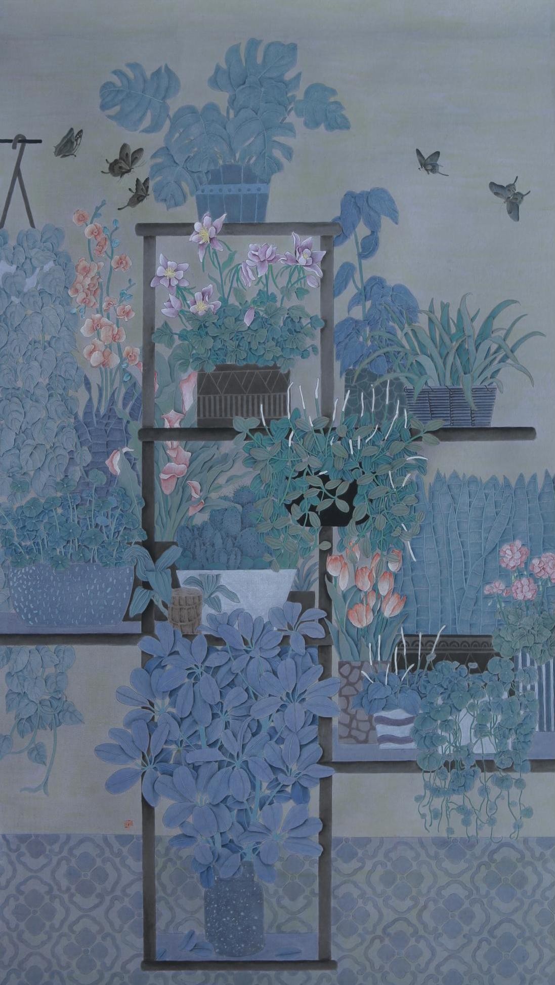 《一现之美》 张佳敏 绢本重彩 140cm×110cm 2023年