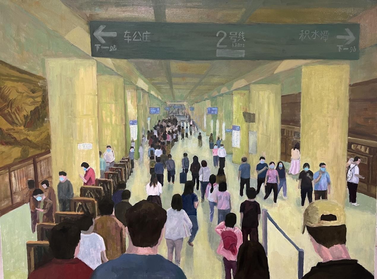 《八点一十五》李盼伟布面油画120cm×160cm 2023年