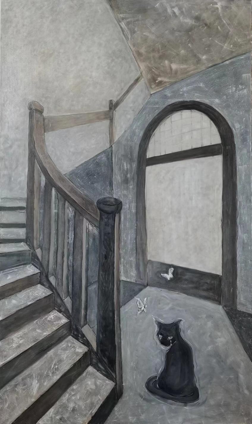 《影落空阶》 马娅玲 纸本设色 170cm×130cm 2023年