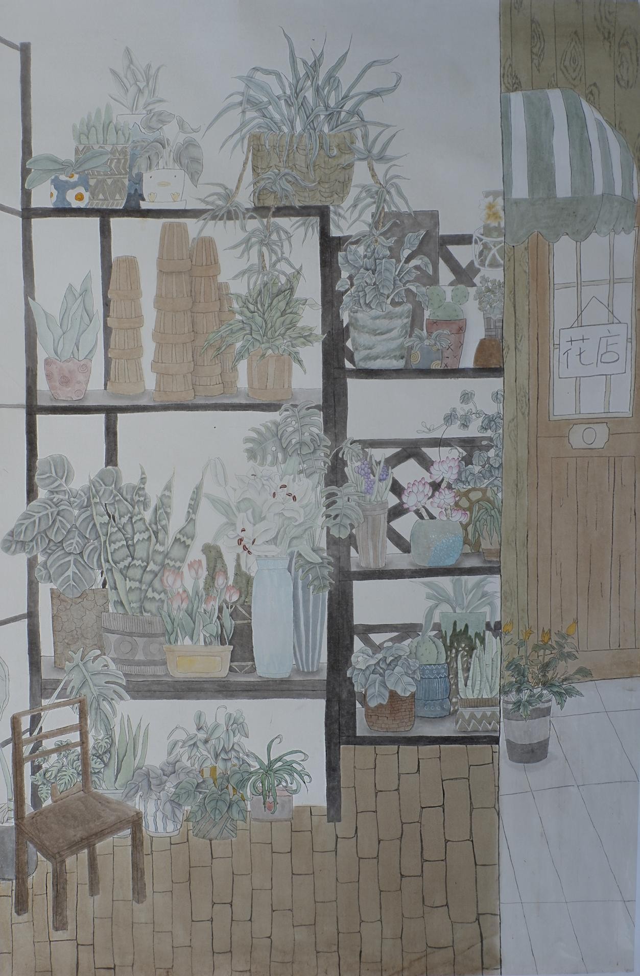 《禁锢绽放》 王文聪 水彩 76cm×53cm×22023年