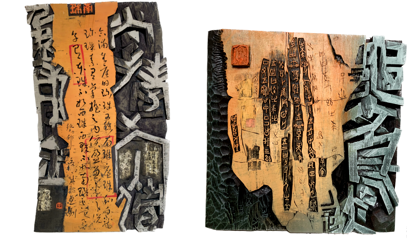 《掌握之内,价盈兼金》(82×45cm 2023年)                                                                           《龟文鸟迹》(40×40cm 2023年)