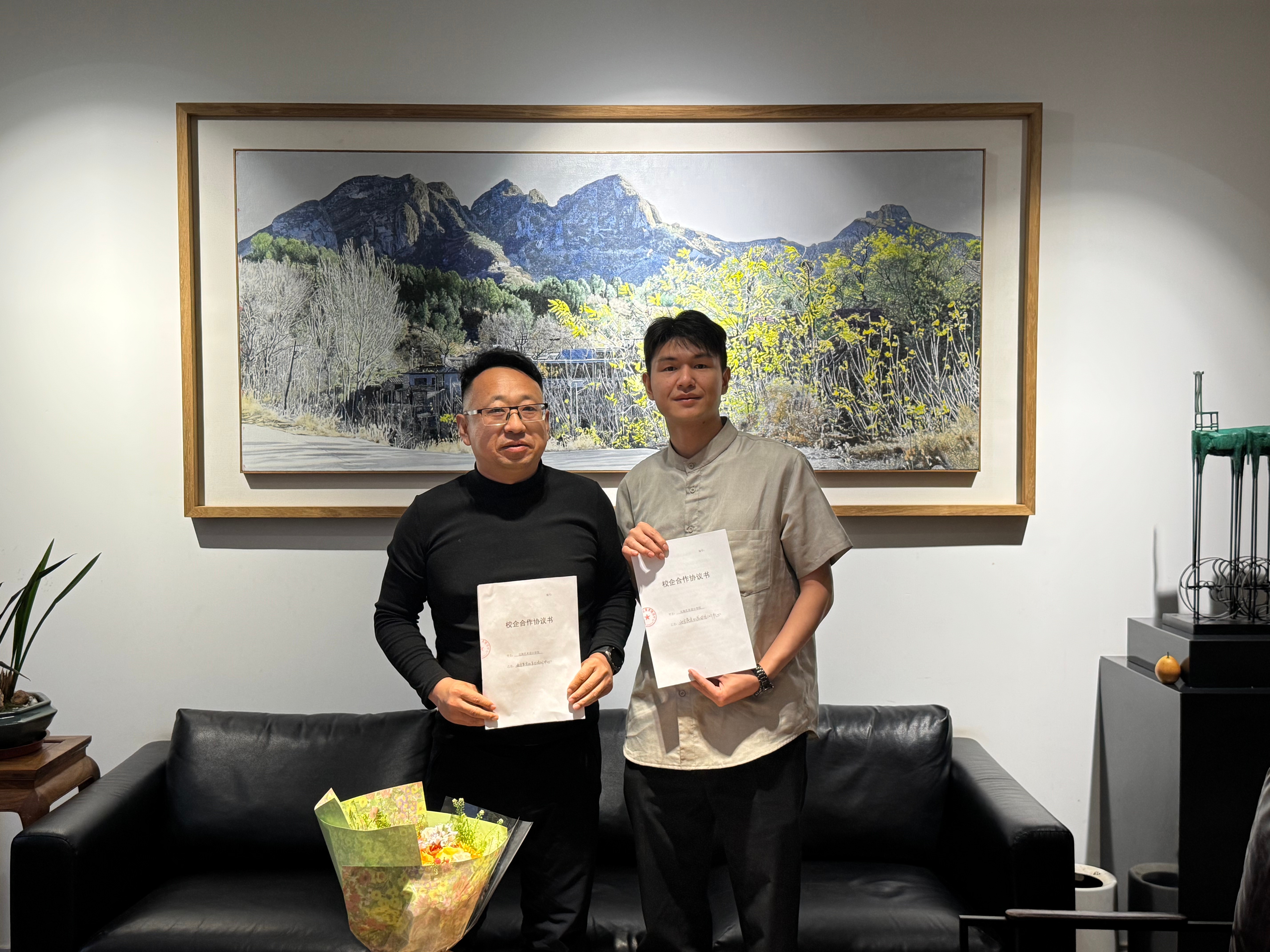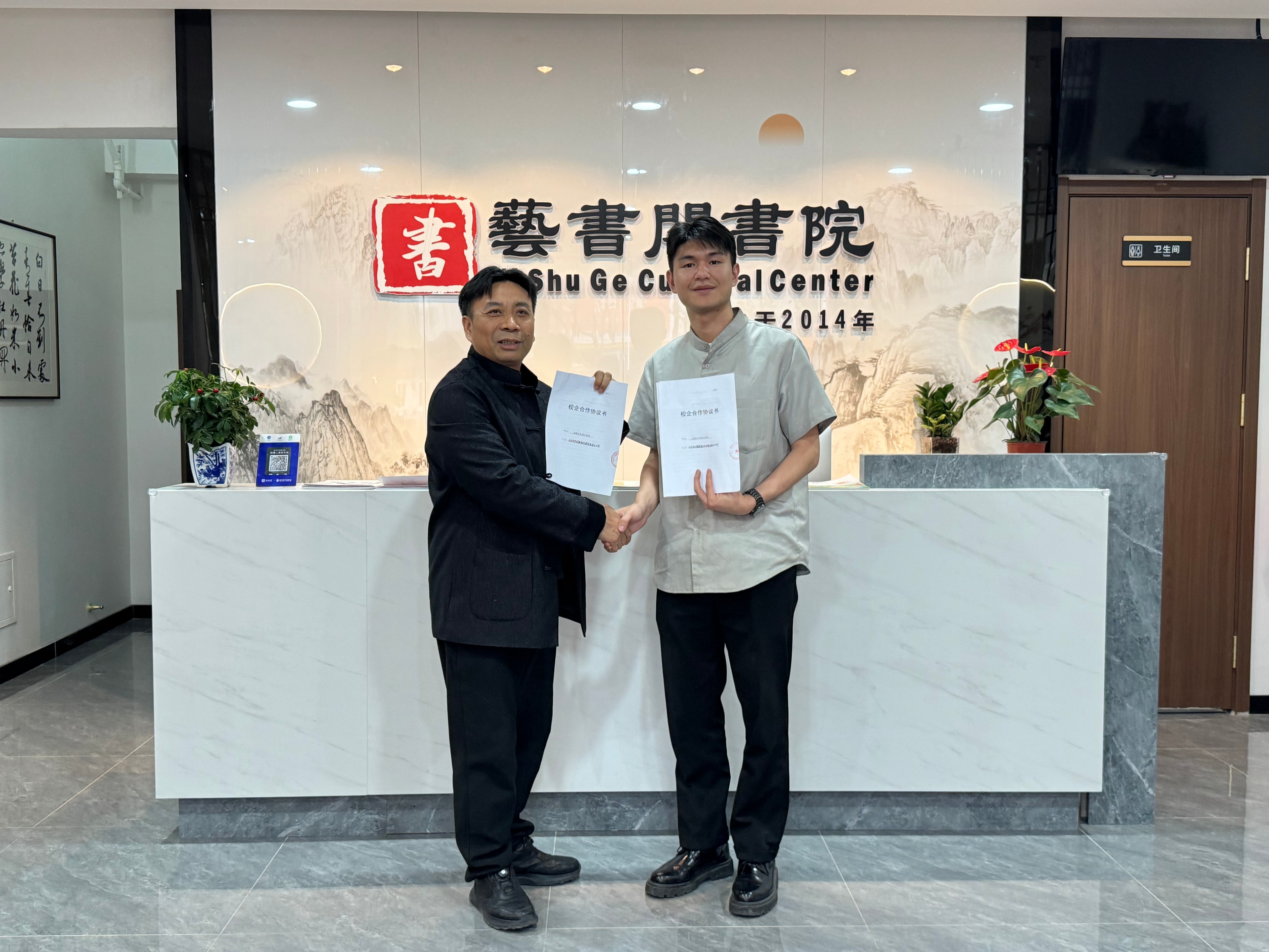 近日,书法学院党支部书记喻广林、教师代表闫鹏一行赴北京,先后对北京黄宾虹美术培训中心、北京艺书阁教育科技有限责任公司开展实地调研。校企双方就人才培养、实践教学、资源共享等合作事宜进行了深入探讨,并成功签署校企合作协议书。美术学院副院长李炫勋随行见证签约仪式。