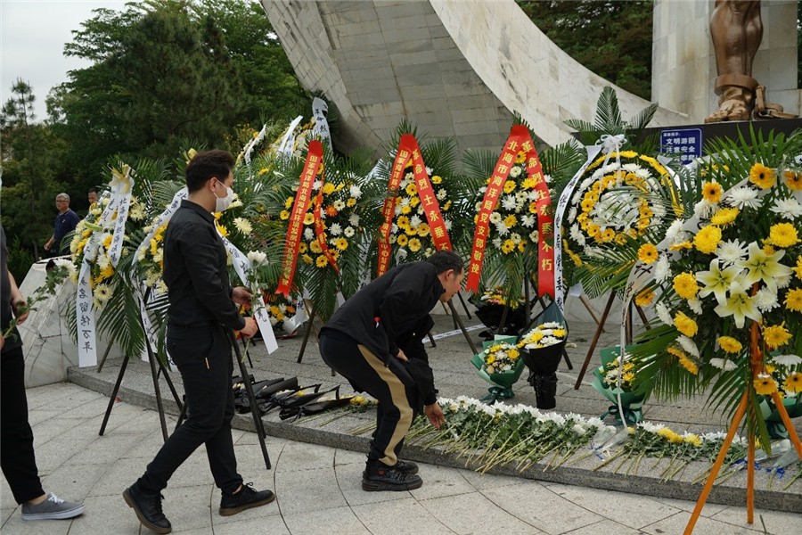 随后全体师生代表默哀一分钟,团员代表向烈士敬献花篮、师生代表向烈士敬献鲜花,表达了对烈士的缅怀和敬意。