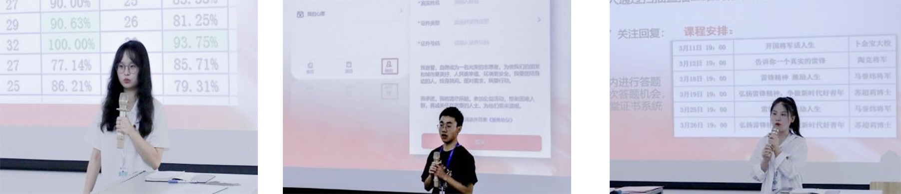 大会第二项,组织部与青志协就团业务培训的具体事项进行汇报。组织部部长林珍娴对各班青年大学习的学习情况进行后台查证汇总,阐述了学习青年大学习的重要性和相应的奖惩情况。组织部副部长邵万欢对“雷锋精神学习”这个活动时间、活动主题、课程内容等相关问题进行阐明。青志协部长杨永未对志愿服务系统操作进行了详细的讲解,让大家清晰地了解了志愿者服务系统的操作步骤。组织部副部长田子谦讲述了智慧团建的相关内容,让全体团支书更加清晰地了解自己工作任务。