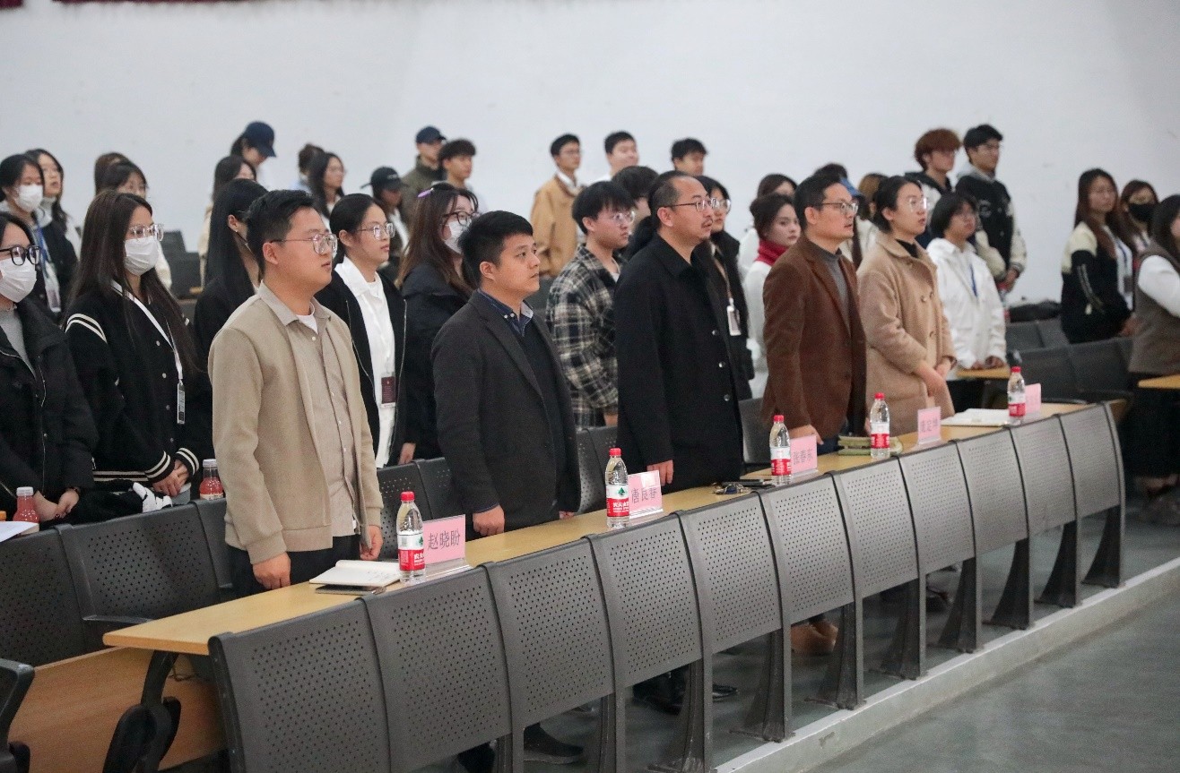 大会第一项,全体起立,奏唱共青团团歌。“少年勇则国盛,少年进则国昌。”在这一刻,同学们心怀壮志,眼望星辰大海,毅然决然地肩负起时代赋予的重任。他们勤于求知,勇于探索,砥砺品德,锤炼能力,立志以青春之我,奋斗之我,为学校贡献自己的力量。