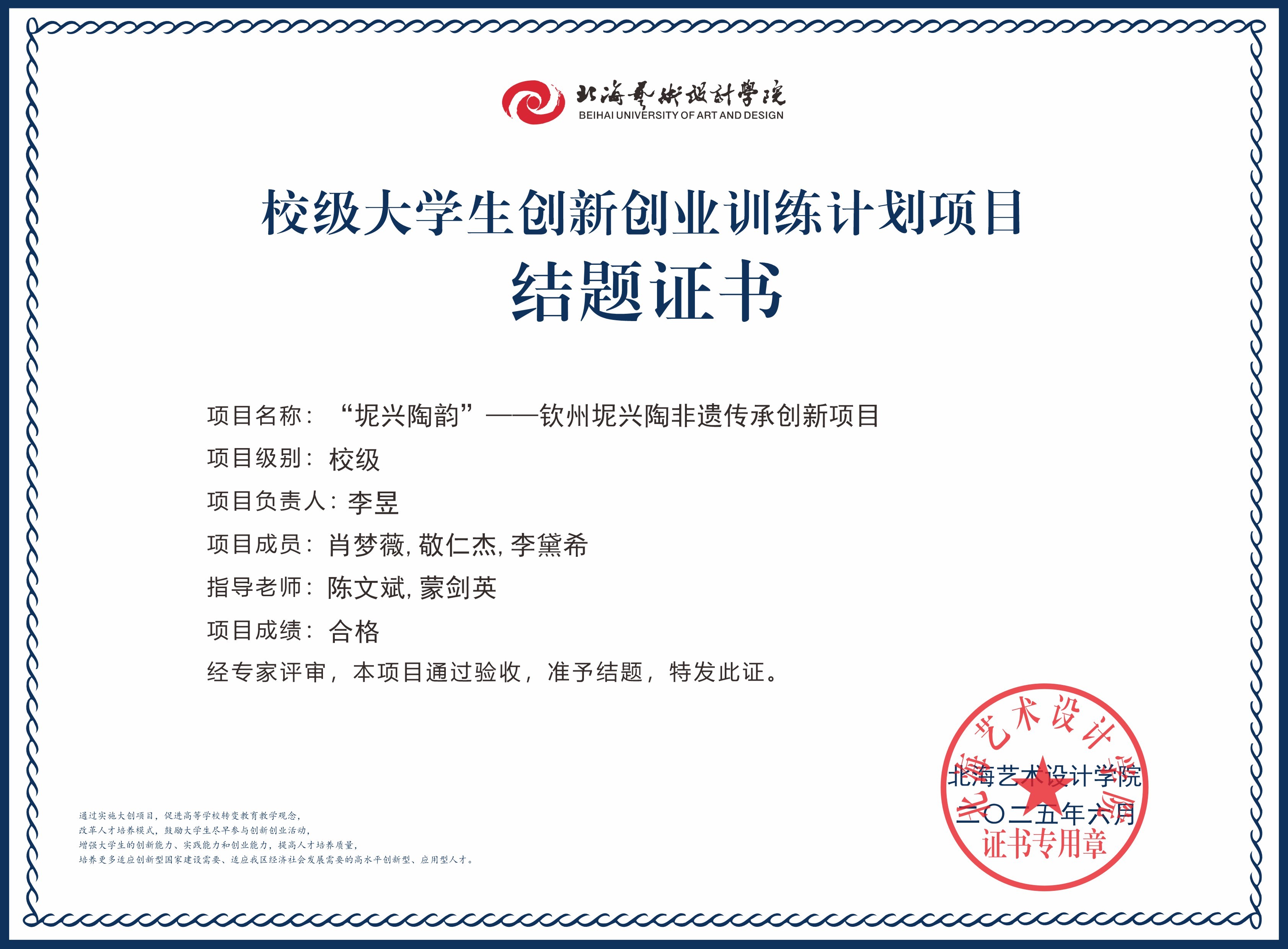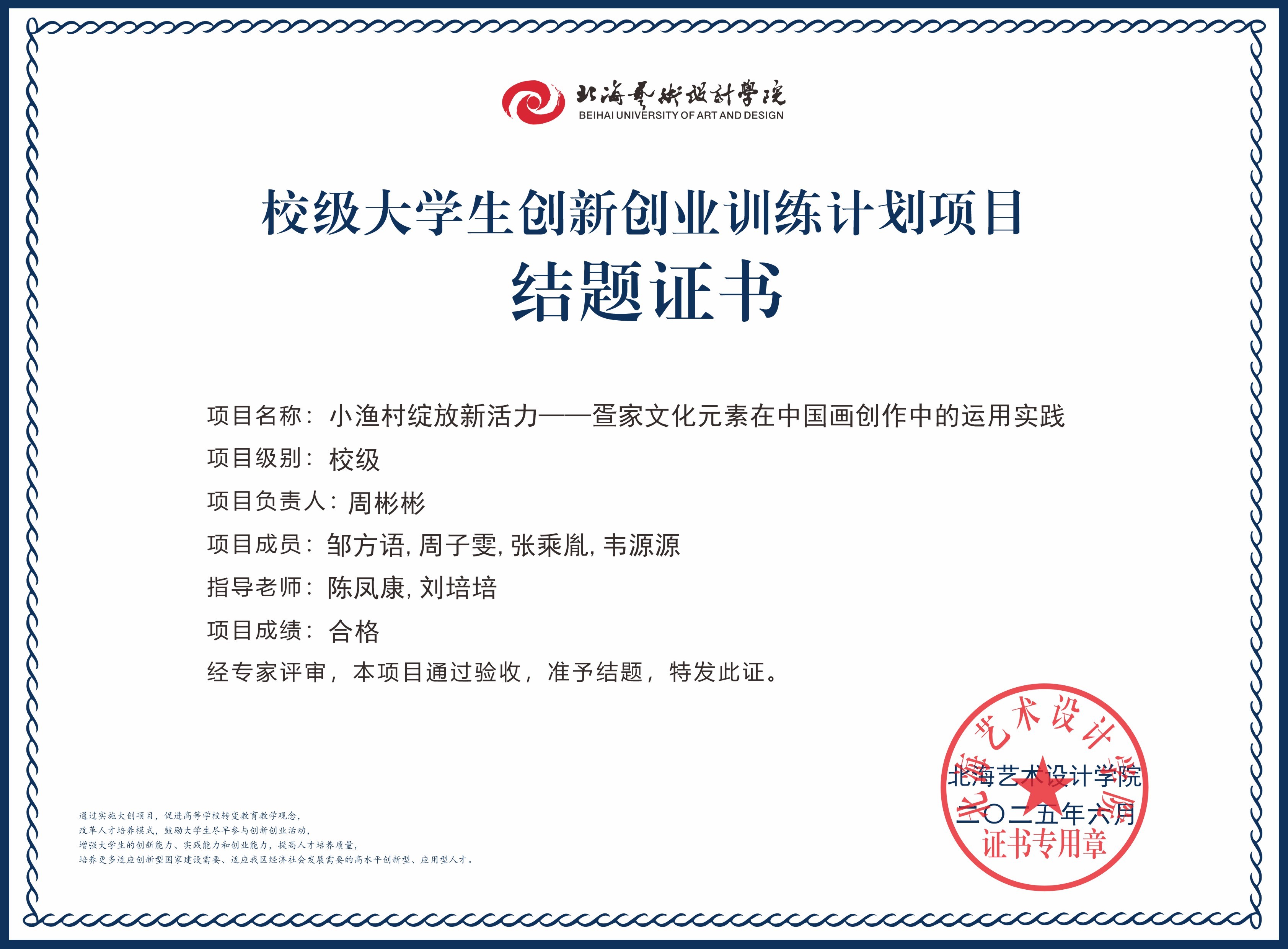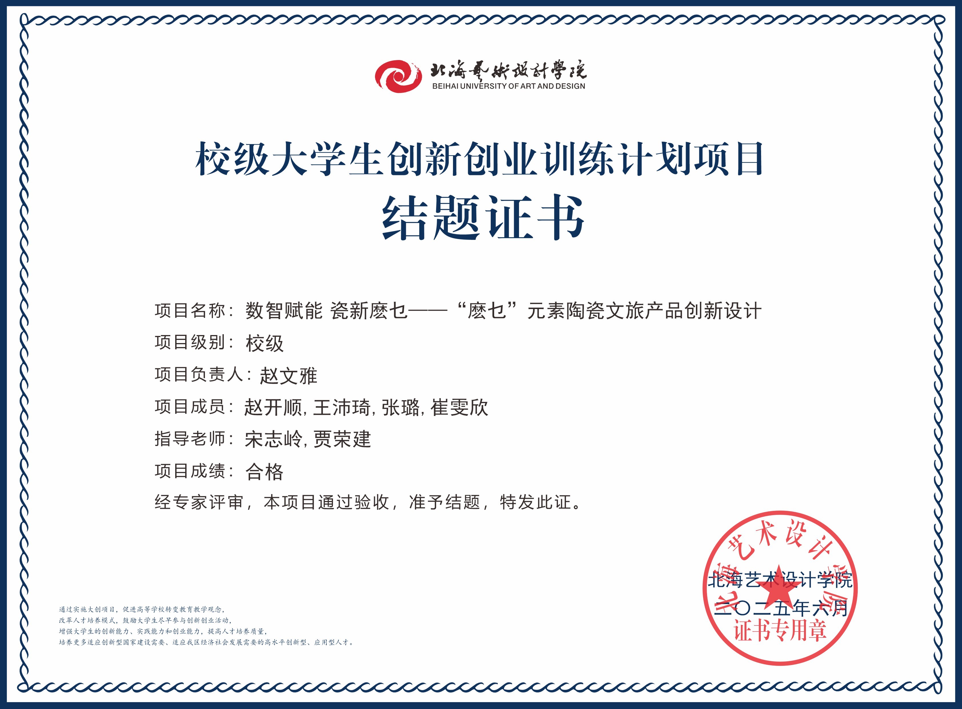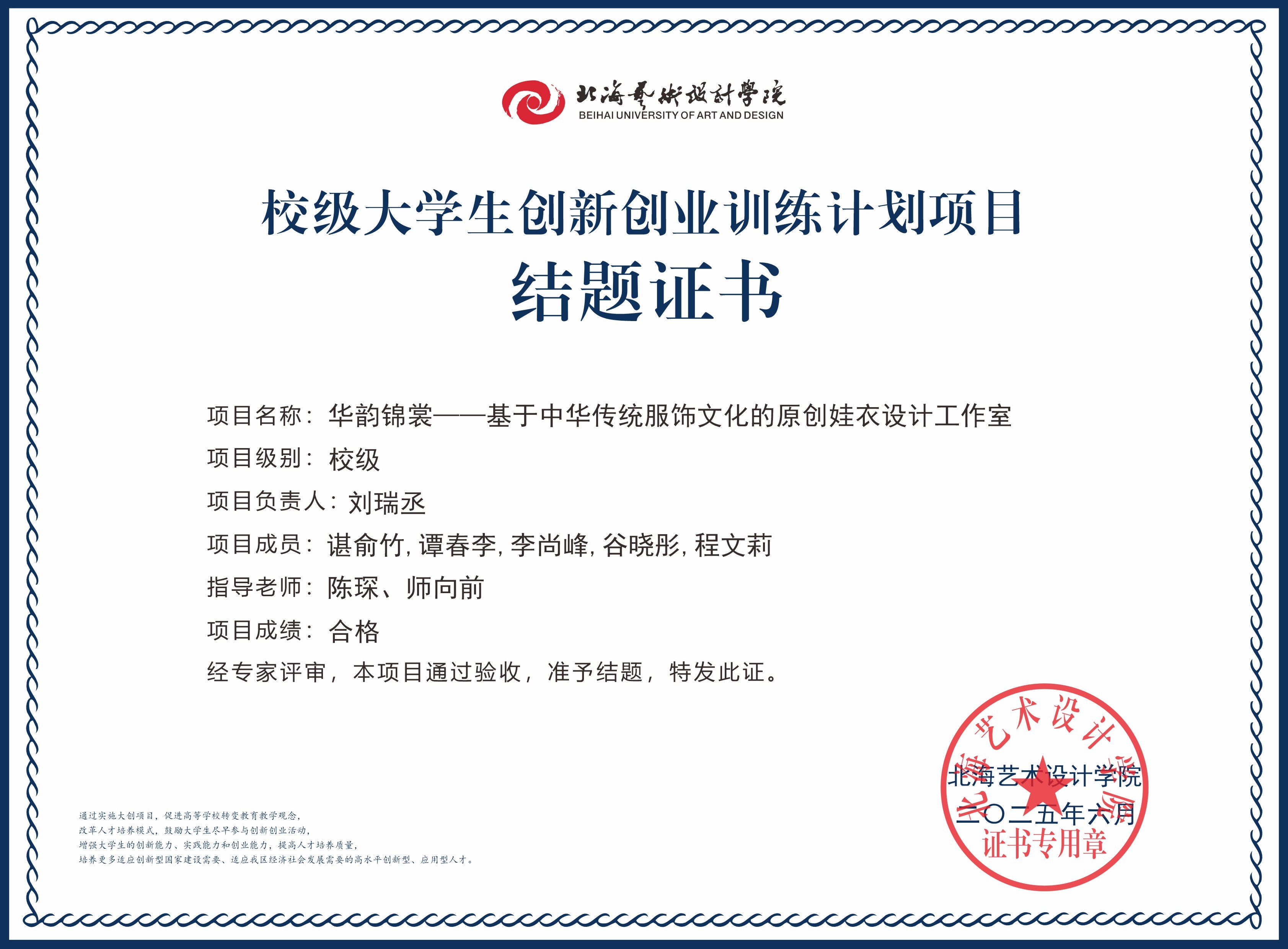 2025年大创项目结题证书(校级)