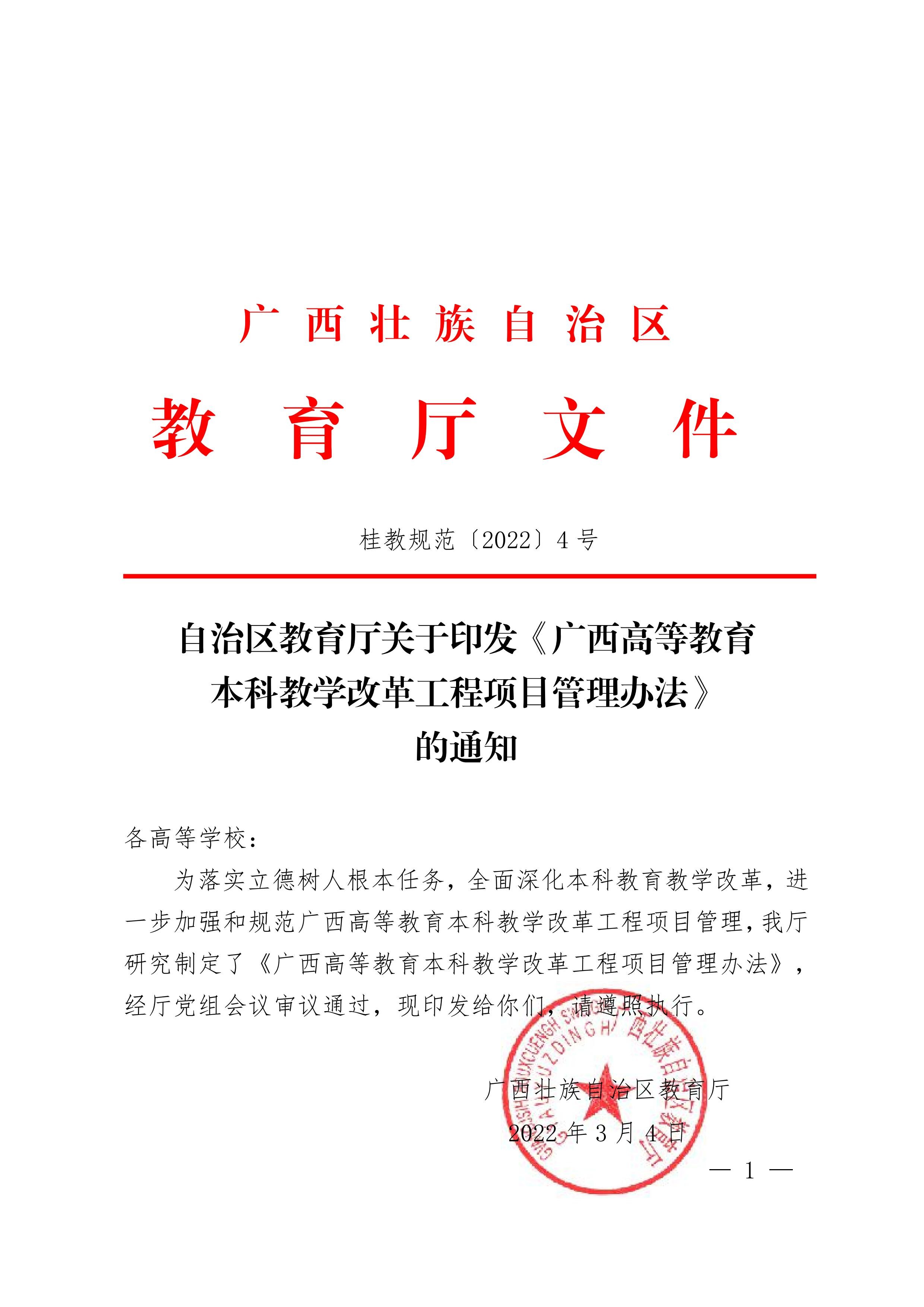 自治区教育厅关于印发《广西高等教育本科教学改革工程项目管理办法》的通知