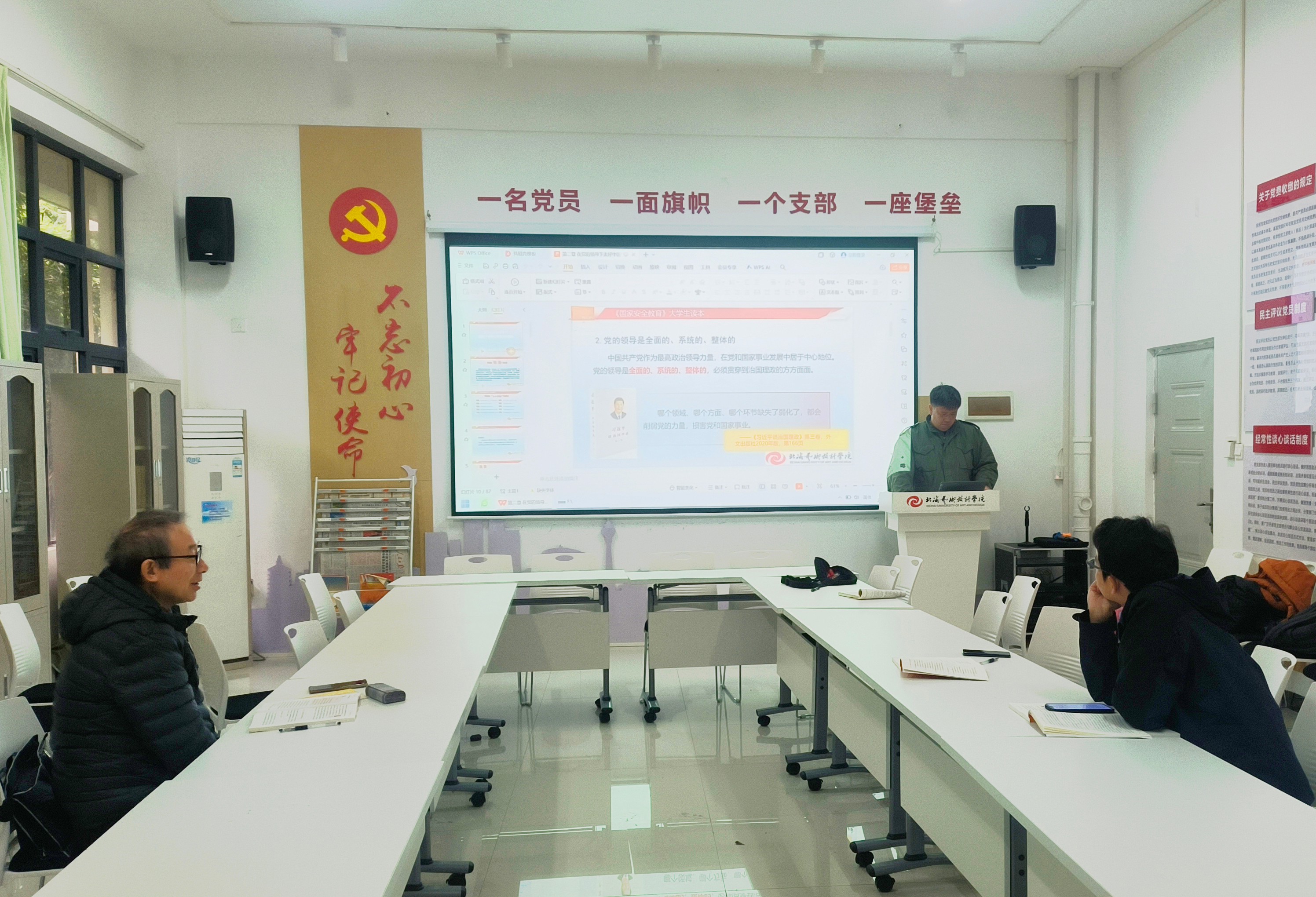 其次,杨凯老师就第一讲主要内容进行了讲解,强调第一讲作为全书全课程的开篇,起到了“总”的作用,除了要向学生介绍课程开设的意义以外,还要使得学生认识到国家安全的重要性。王瑞轩老师就第二讲主要内容进行了讲解,强调第二讲的内容要抓住坚持党对国家安全工作的绝对领导这个中心思想,呼吁各位教师要根据自身专业特长,结合2024级各专业学生的特点,对课件内容作个性化的改进。
