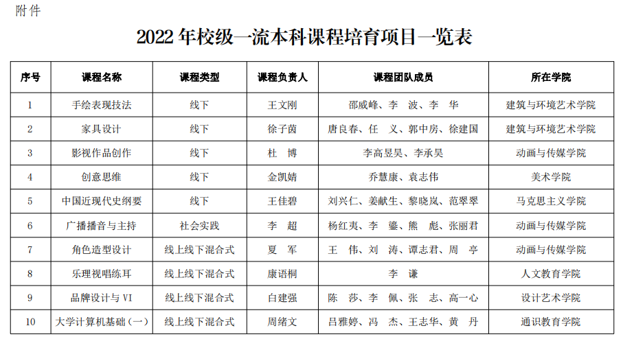 附件:2022 年校级一流本科课程培育项目一览表