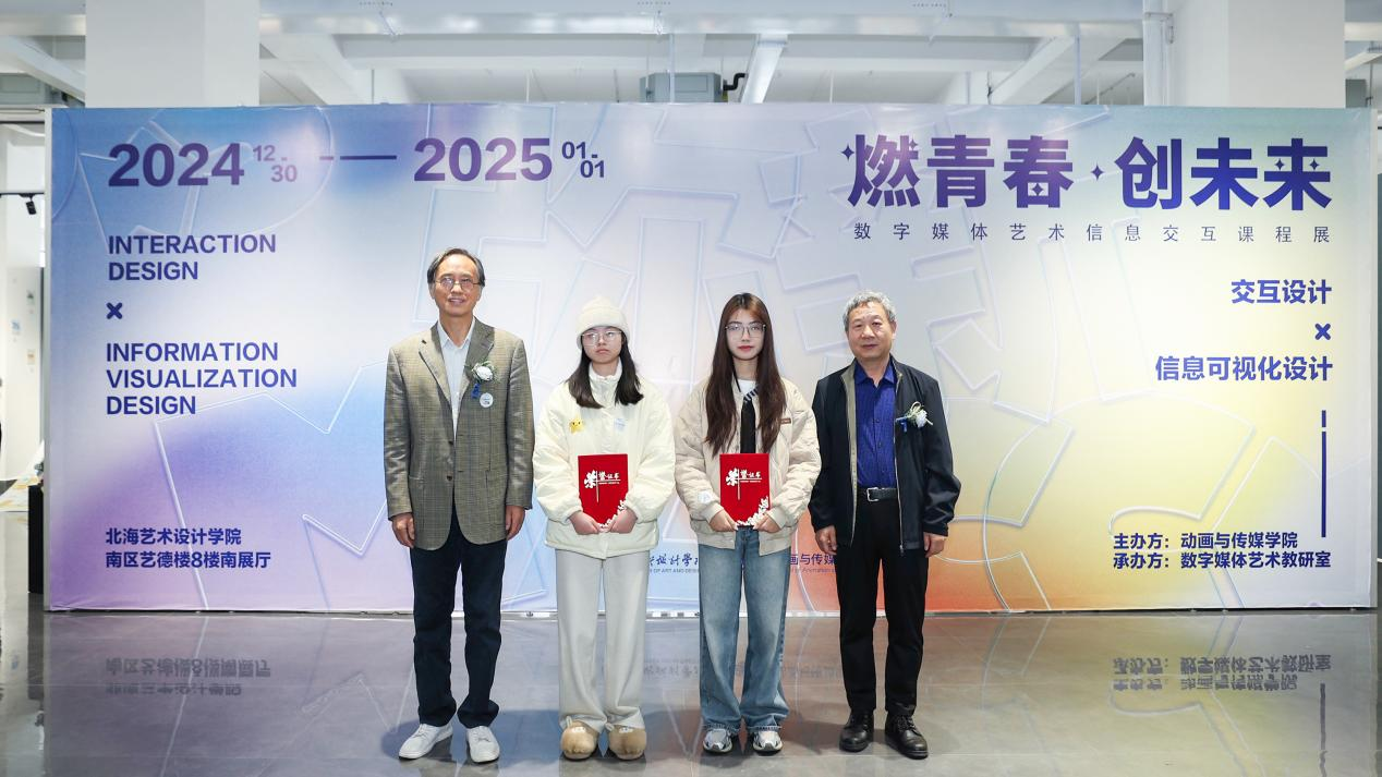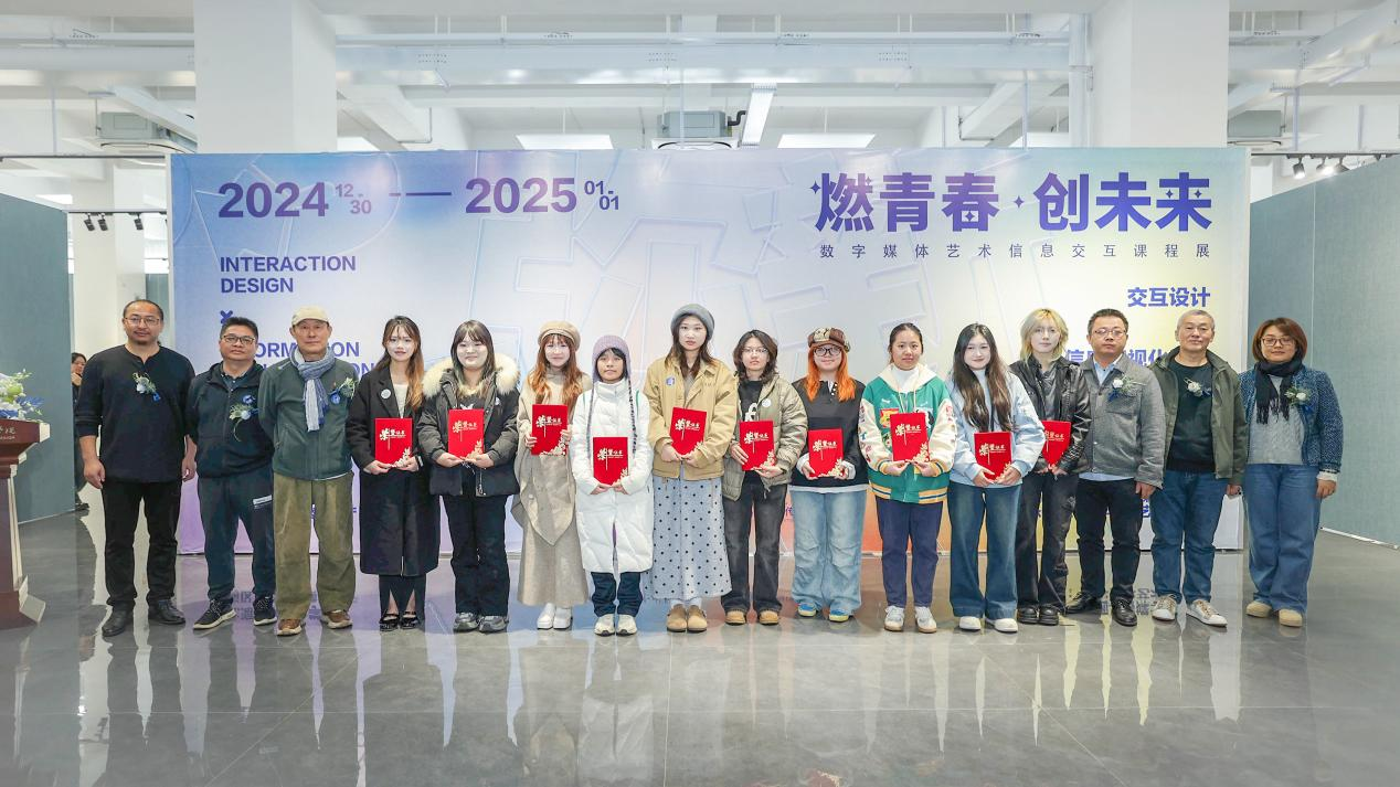 在一片充满激情和热烈的氛围中,课程展迎来颁奖环节,本次展览共评选出一等奖2组、二等奖6组、三等奖8组。获奖作品主题涵盖了非遗文化、老龄化、艺术疗愈等多个领域,充分展示了学生们在数字媒体艺术方面的创新能力和实践成果。