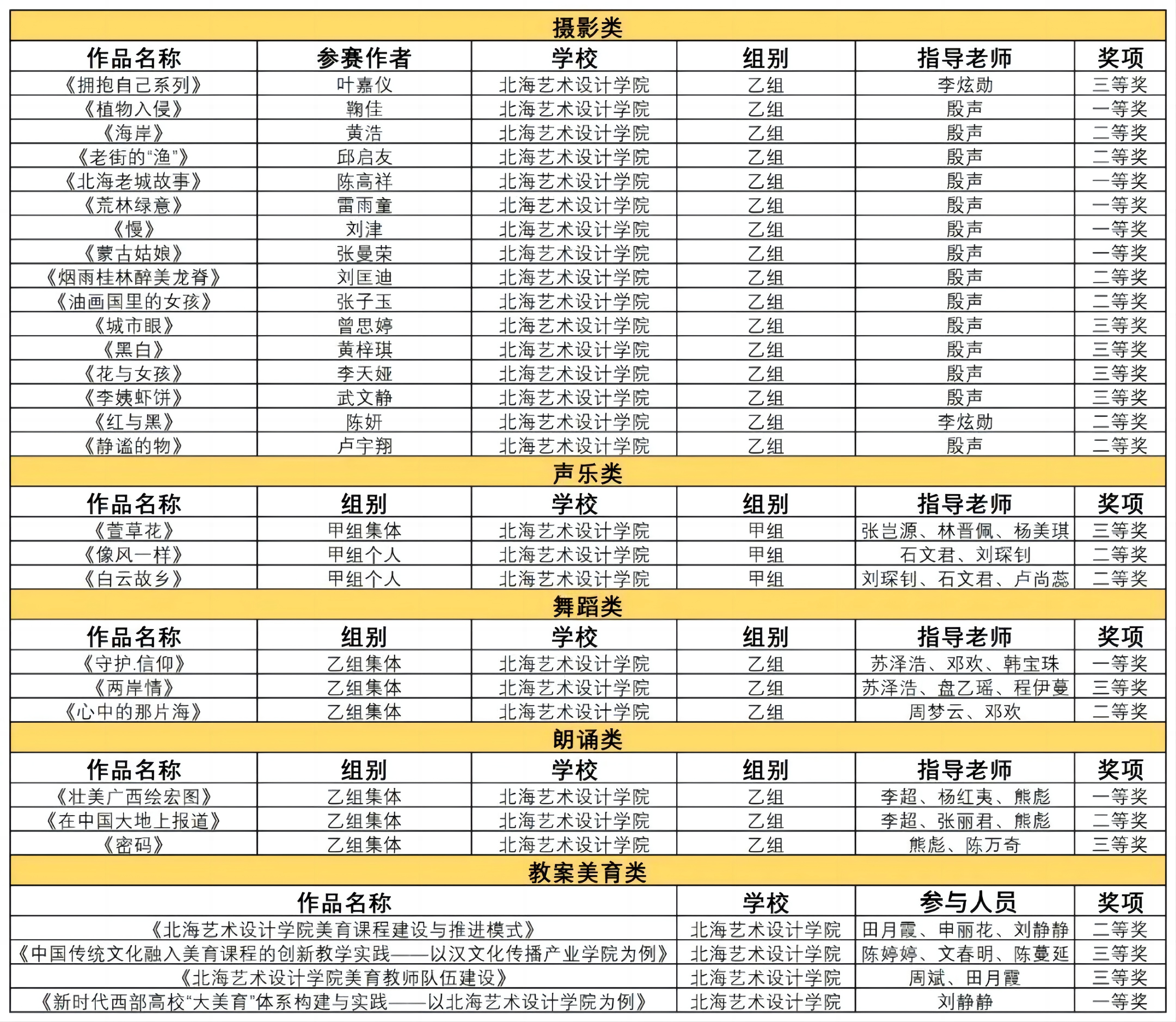 喜报|北海艺术设计学院在广西第七届大学生艺术展演活动中喜获佳绩