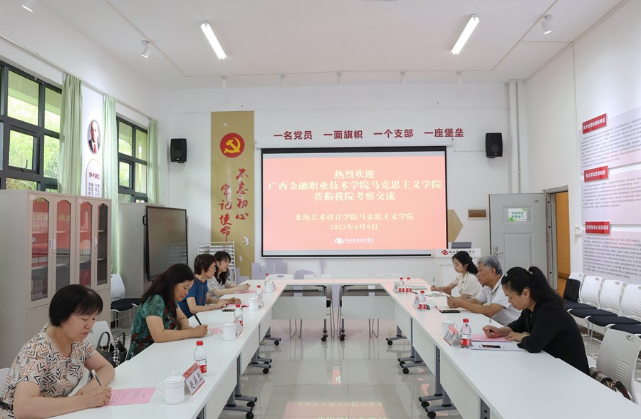 6月9日下午,广西金融职业技术学院马克思主义学院院长兰晓黎一行4人莅临我院考察交流,我院院长姜献生、副院长罗秋梅、综合办主任王佳碧参加了此次交流活动。
