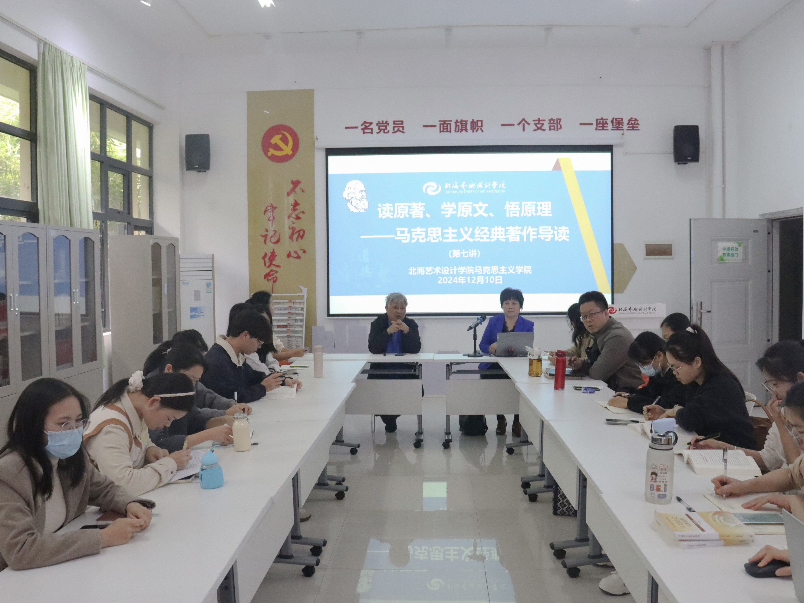 12月10日下午15:00本学期马克思主义经典著作导读系列活动最后一讲在西校区行政楼103迎来了完美收官,由李冀宁教授主讲,我院院长姜献生主持,学院中青年教师参加。