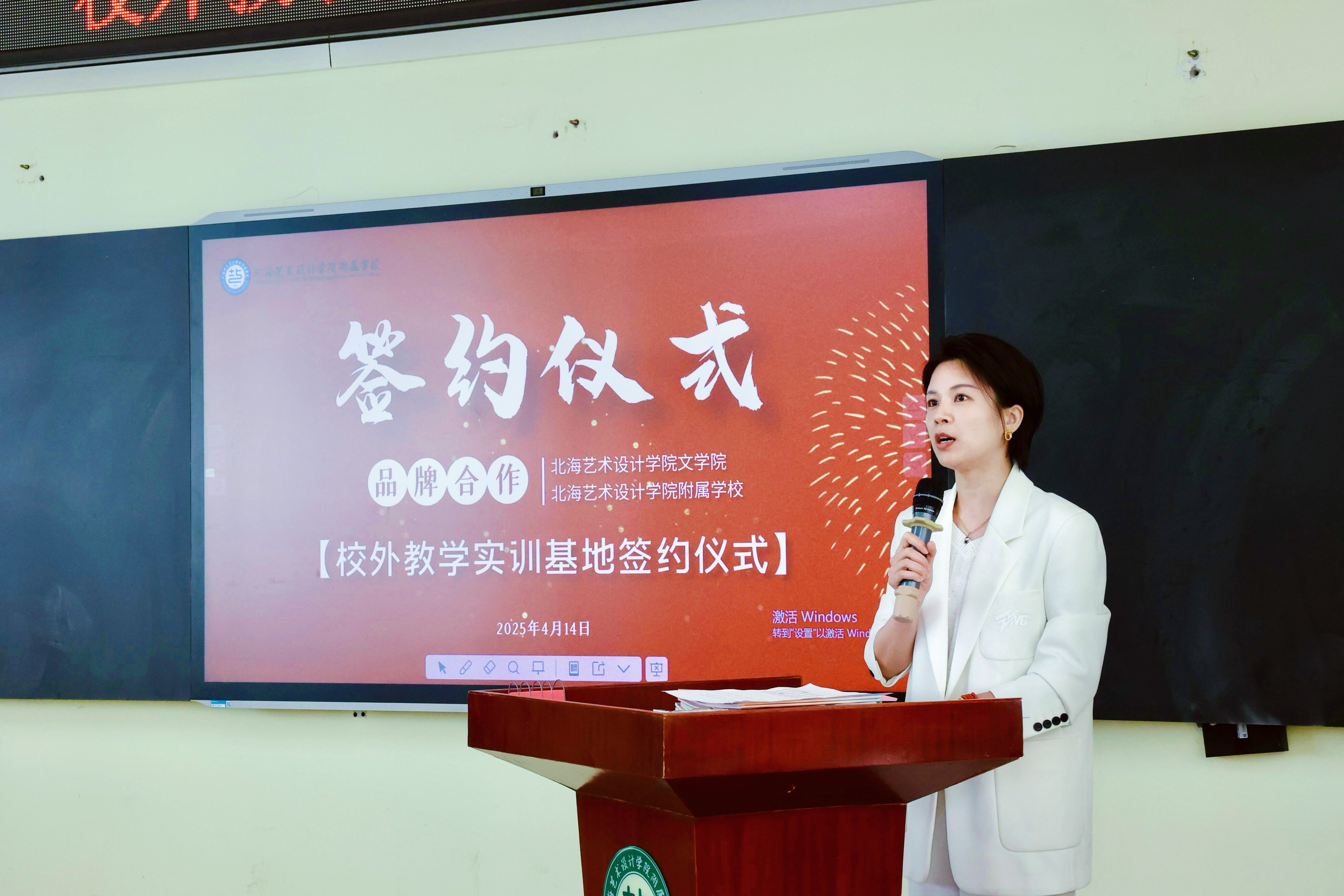 此次校外实训基地协议的签署,是北海艺术设计学院文学院与北海艺术设计学院附属学校携手共进、协同创新的重要举措。双方将以此次合作为契机,进一步加强交流与合作,整合教育资源,实现优势互补,共同培养适应社会发展需求的高素质人才,为推动教育事业的发展做出更大的贡献。相信在双方的共同努力下,校外实训基地将成为培养优秀教育人才的摇篮,为教育事业的发展注入新的动力。(曾心怡/摄)