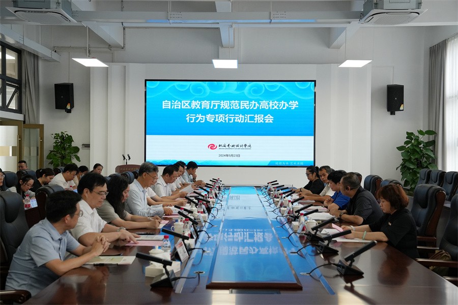 我校校长卢新华就学校基本概况、规范办学情况、存在问题和解决措施三个方面作汇报。从2021年起,为迎接教育部本科教学合格评估,全校全面开展规范办学行为工作,近年来,我校全面加强党的领导,加大办学投入,规范教学管理,提升教学质量,在师资队伍建设,专业和课程建设,基础设施建设等方面取得了显著成绩。5月13日全区规范民办高校办学行为专项工作部署会后,我校召开专题会议,设立工作专班,制定工作方案,围绕8个重点任务全面摸排,自查自纠立行立改,确保专项行动扎实推进取得成效。
