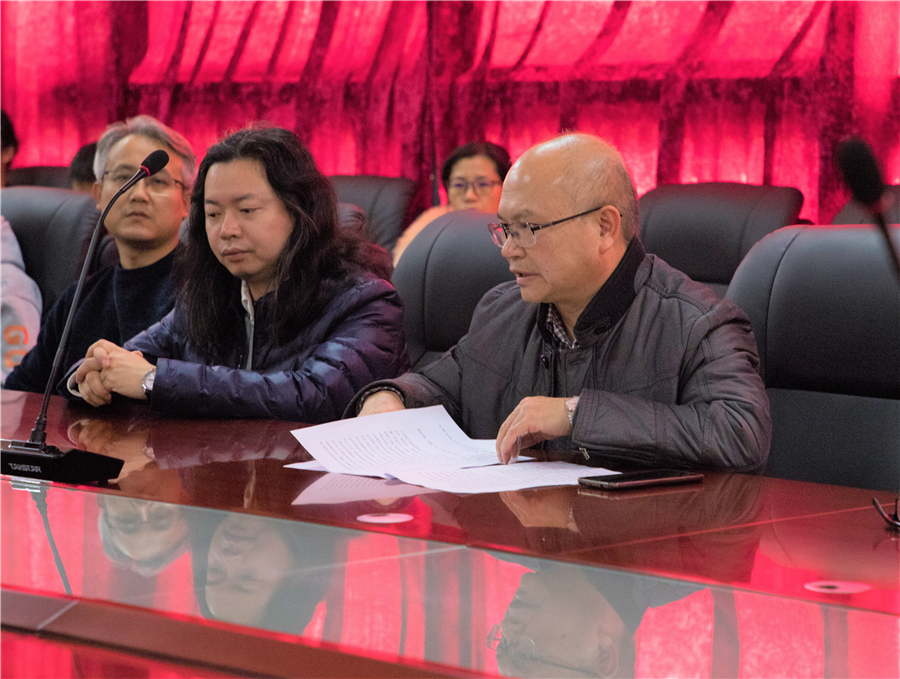 我校副校长胡胜对本次艺术展览的工作做动员部署。他指出,参与本次艺术展的教师们要拿出最高水平和最认真的态度来面对,本次展览要体现出最高标准。本次艺术大展由马克思主义学院协办,给我们提供理论指导和支持,师生创作要把“课程思政”融入到作品创作中去,最后将作品作为“课程思政”的成果进行展示。美术学院常务副院长龚为对本次迎“建党100周年”艺术大展任务做具体布置工作,对教师创作分工,绘画规格、尺寸、画种做了统一安排。随后现场专家和老师们展开热烈探讨。