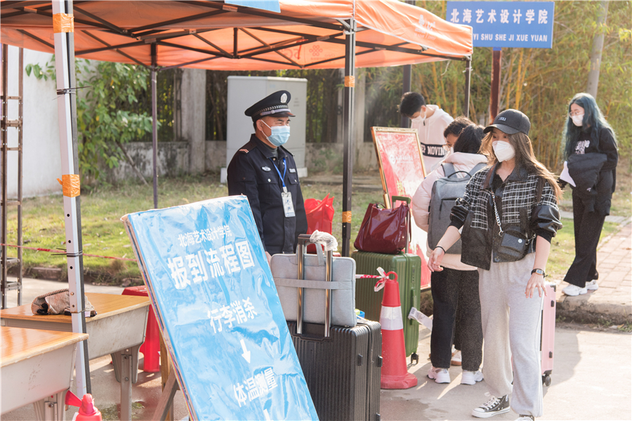 学生报到期间,按照疫情常态化防控要求,报到学生需提供连续14天的健康报告表和大数据行程卡、健康码等进行报到手续的查验。各部门严格按照现行有关规定落实疫情防控闭环管理,报到工作井然有序。