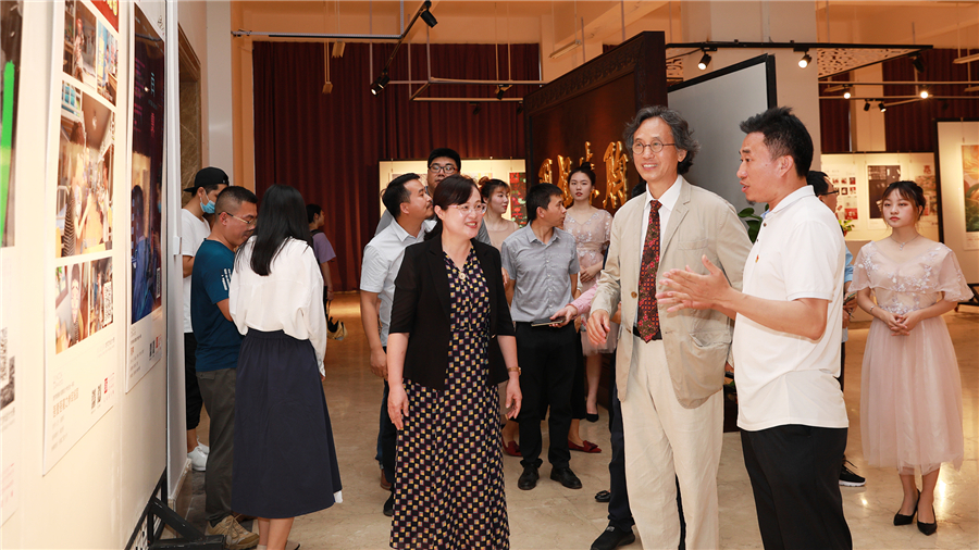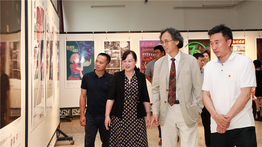 北海市教育局四级调研员刘振华,党委副书记韦静月,副校长胡胜、王斌、陶立阳等学校领导,与动画学院、设计学院、环艺学院师生共同见证开幕仪式。 (