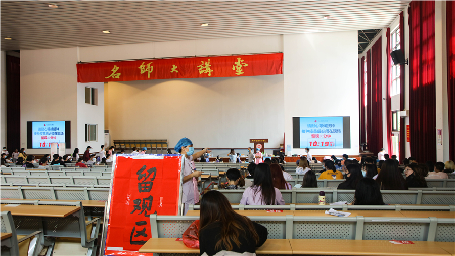 截止5月15日,在校内临时接种点已完成7600余人新冠病毒疫苗接种。(