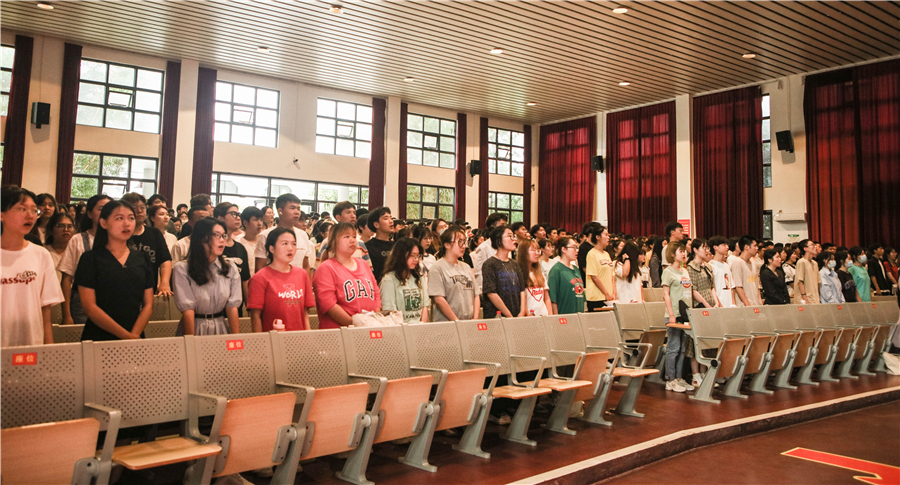 全体师生起立奏唱《国歌》