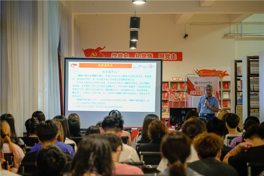 2021年6月1日下午,学校图书馆开展“不忘初心学党史”系列讲座活动,这是“不忘初心学党史”系列讲座的第四场,由图书馆副馆长王作先主持,特邀马克思主义学院院长姜献生教授主讲。图书馆全体人员参加了此次活动。