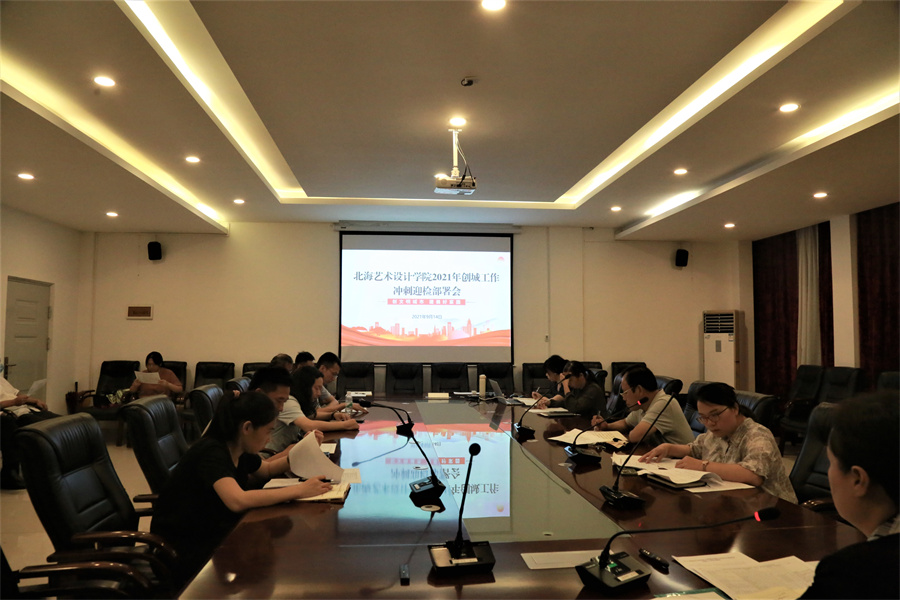 9月14日晚,北海艺术设计学院召开2021年创城工作冲刺迎检部署会,会议传达了全市创建文明城市冲刺动员大会相关会议精神和要求,并就学校落实全市会议精神和加紧做好下一步创城工作开展进行了部署。