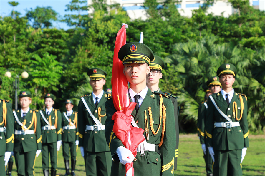 庄严雄壮的国歌声响彻校园,开学典礼在升旗仪式中拉开序幕。