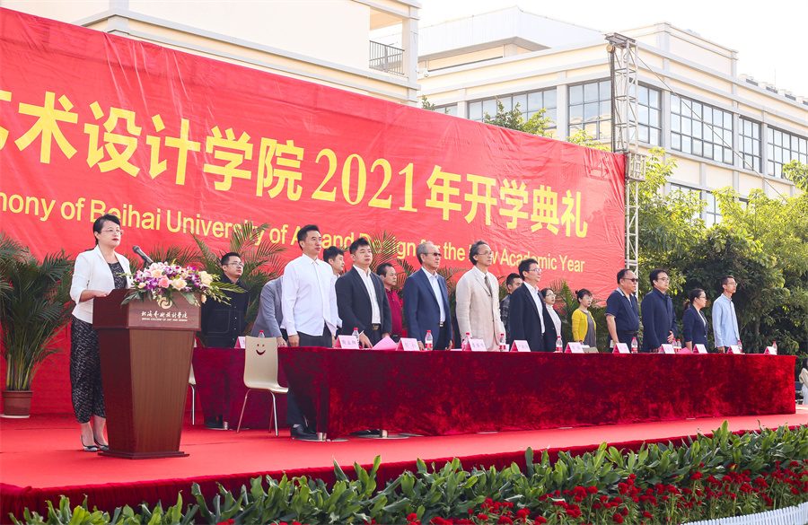 金秋十月,缘聚北艺。10月12日上午,北海艺术设计学院在西校区田径场举行2021年开学典礼。北海市委教育工委专职副书记黄毅,北海市高等教育管理服务办公室主任包建明,清华大学学术委员会副主任、教授李当岐,学校领导卢新华、贺争平、彭仁、韦静月、陶立阳、黄侃明、郑念贻、刘朝雄及全体一万多名师生一同参加了典礼。典礼由校党委书记张阳主持。