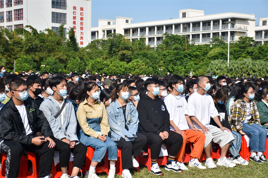 典礼上,2021级学生陈锘尧、2020级学生郭振淼、张丽君分别代表新生、在校生和教师依发言。