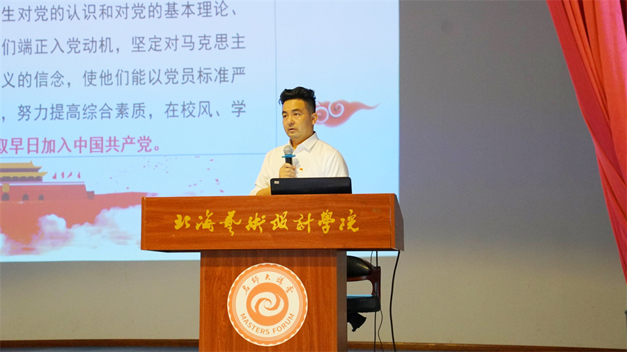 美术学院党总支书记韩玮从端正入党动机、坚定共产主义远大理想、加强政治理论学习三个方面充分解答了当代大学生如何以实际行动争取早日入党,他希望同学们要从自身做起、从点滴做起,不断提高自身修养和政治觉悟,端正个人入党动机,坚定共产主义理想信念,早日加入到党组织队伍中来。