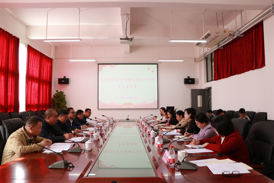 座谈会上,张阳书记对北部湾大学一行的到来表示热烈欢迎,并从学校办学历史、党建工作、党史学习教育、课程思政建设等方面介绍了学校近年来的发展建设情况。她表示,北部湾大学和北海艺术设计学院一直有着密切的交流,希望能延续两校良好关系,相互借鉴办学经验,拓宽交流合作领域,共促两校发展。