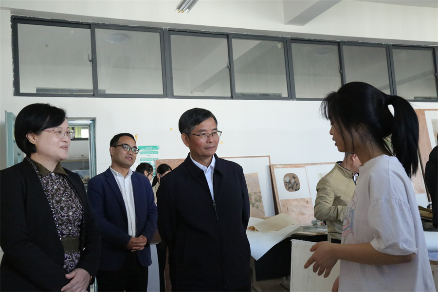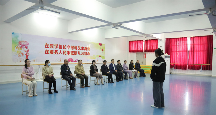 座谈会前,陈锦山一行还参观了我校美术学院水彩工作室、设计艺术学院工作室及学校三期工程建设全景,观看了设计艺术学院优秀毕业生作品走秀视频,动画与传媒学院网络电影《唱给海的歌》和三维动画《半条被子》,以及人文教育学院舞蹈表演专业学生舞蹈《踩曲姑娘》、建筑与环境艺术学院“红色元素模型展”。