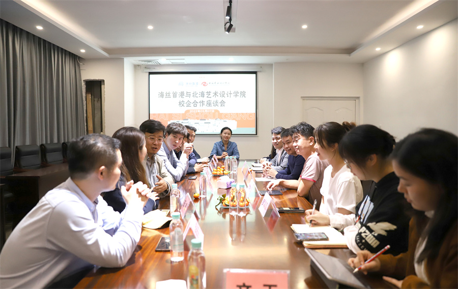 交流座谈会上,北海市古郡丝路旅游开发有限公司总裁罗敏对我校一行的到访表示欢迎,并对海丝首港项目进行了介绍。他表示,当前社会经济发展的大形势对高精尖专业人才的需求量激增,希望通过与学校合作深挖合浦汉代海上丝绸之路始发港文化价值,打造文创中心,共同创造具有时代创造性的文创产品。