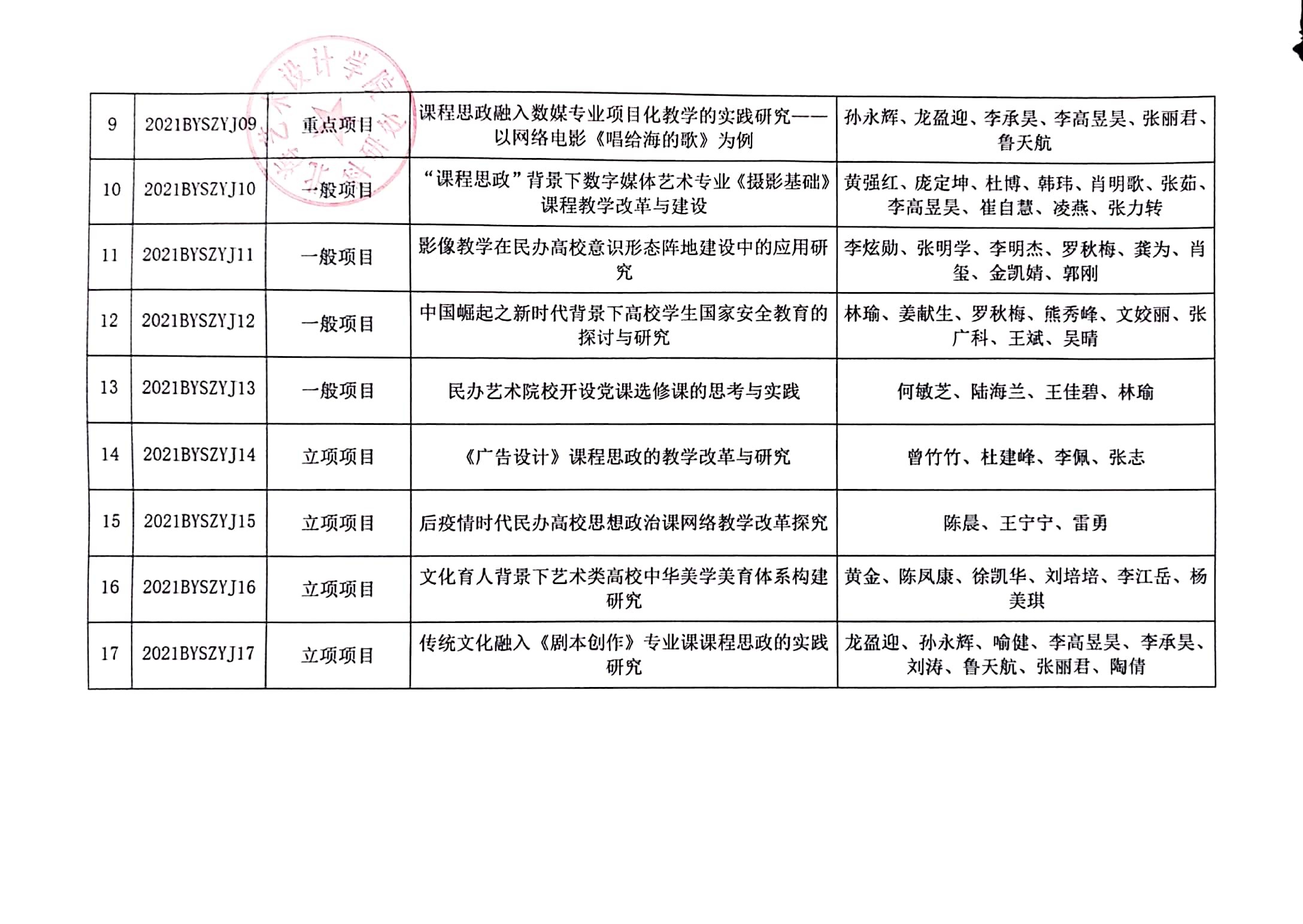 北海艺术设计学院2021年度思想政治教育教学改革理论与实践研究项目立项通知