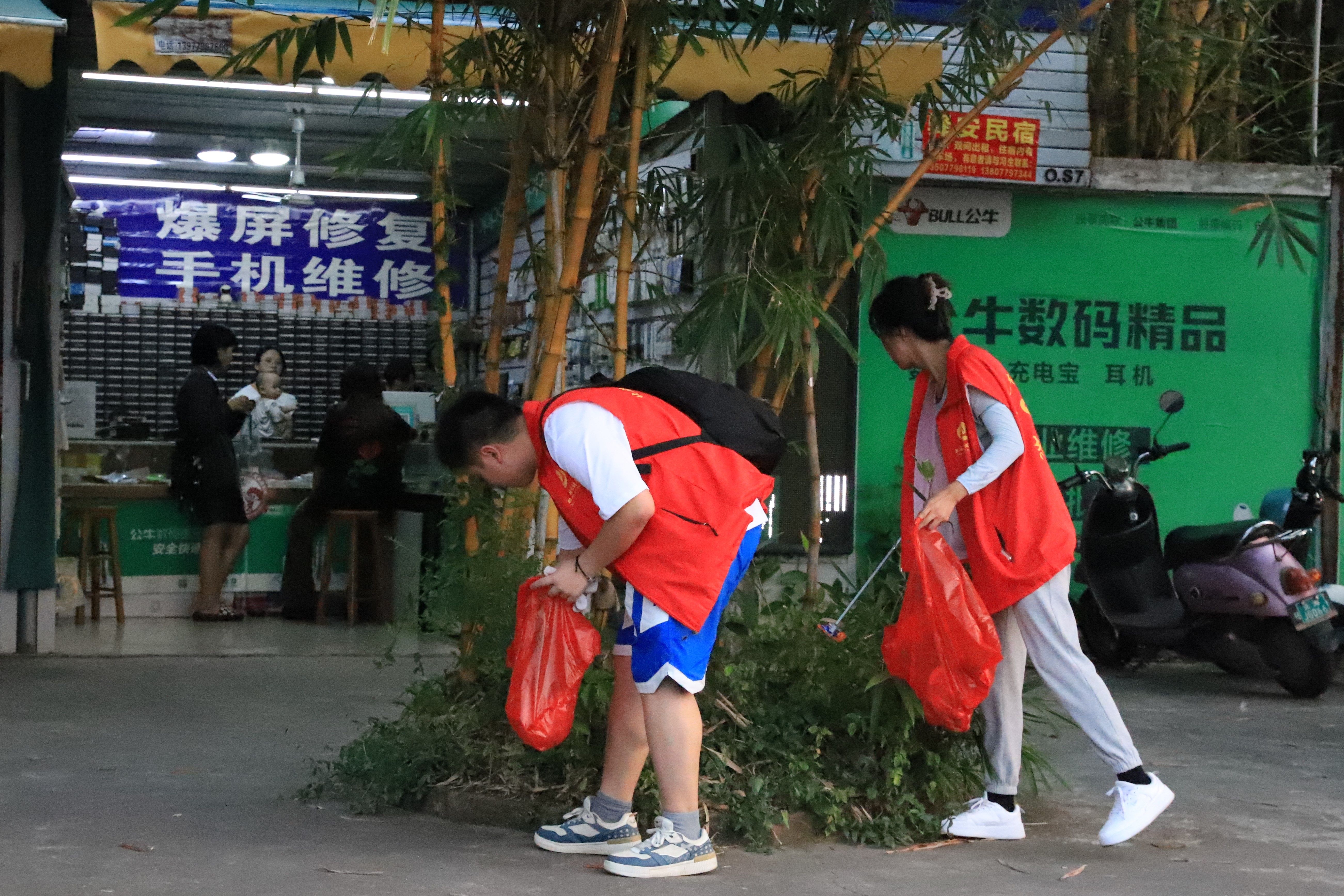 志愿者们手持垃圾袋,钳子等工具,对人行道、绿化带的烟头、废纸片等垃圾进行仔细清理,为街道清洁努力贡献着自己的力量,用实际行动助力创城工作、践行志愿精神!