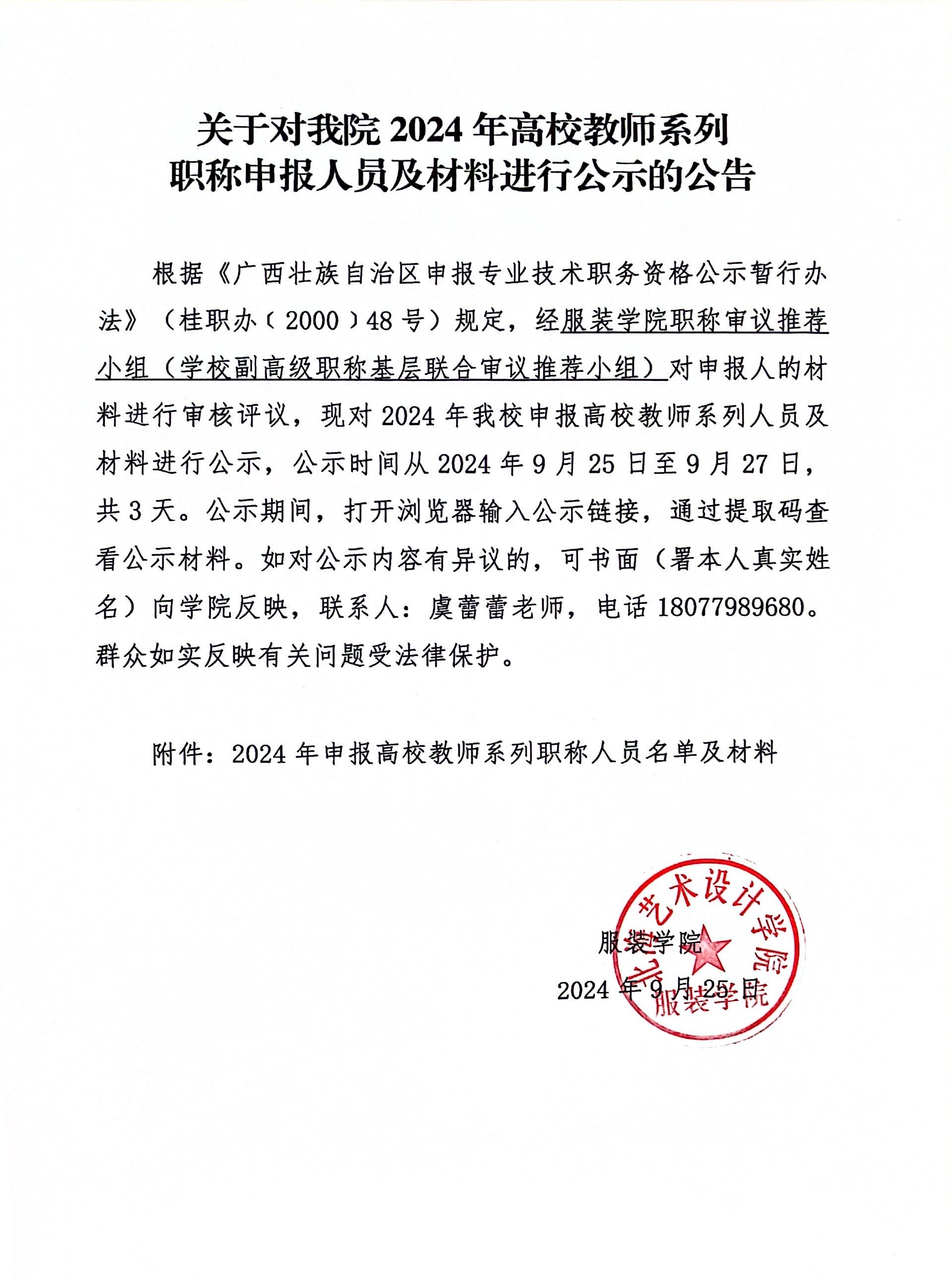 关于对我院2024年高校教师系列职称申报人员及材料进行公示的公告