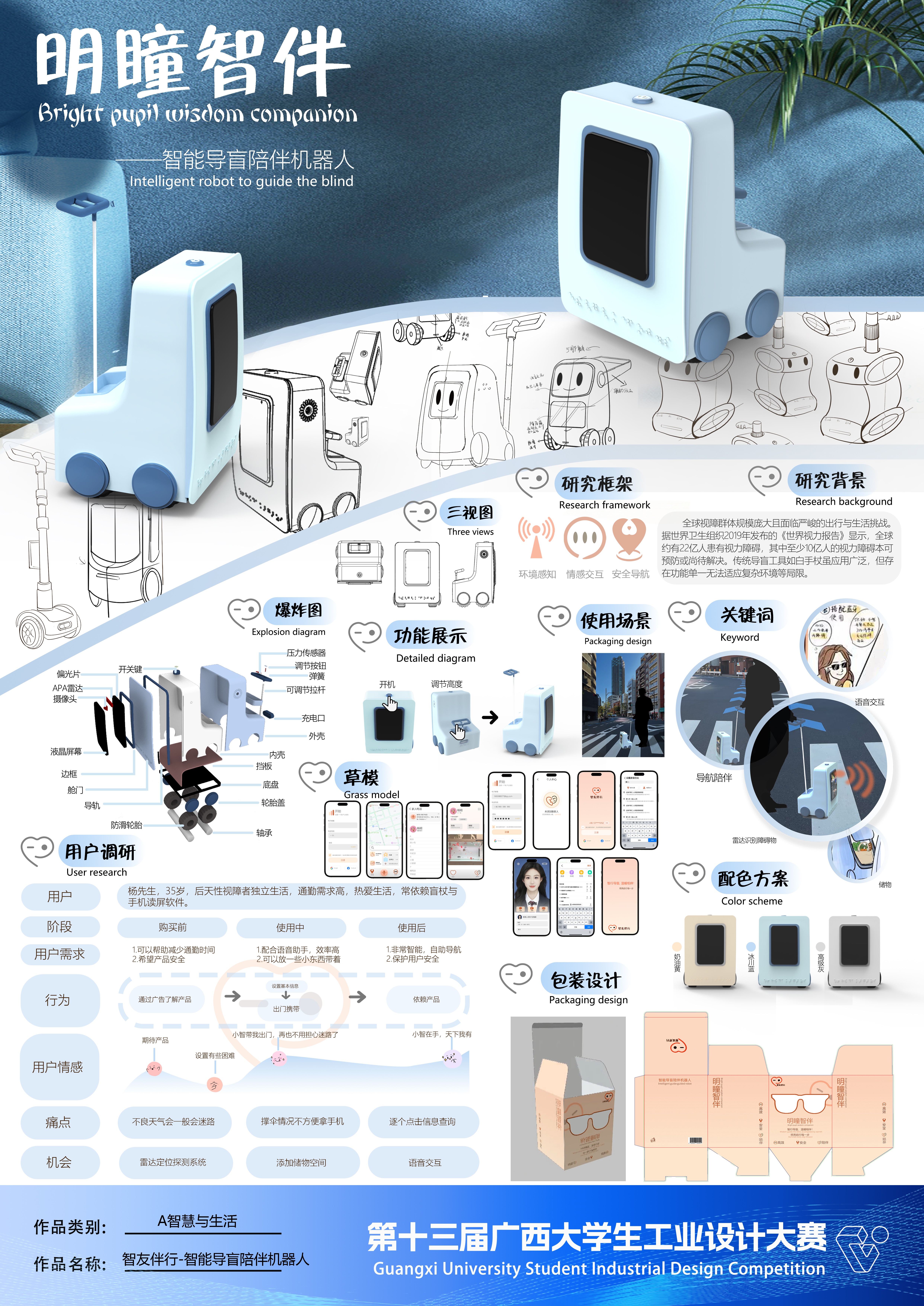 作品名称:智友伴行——智能导盲你陪伴机器人    作者:王聪、周晨