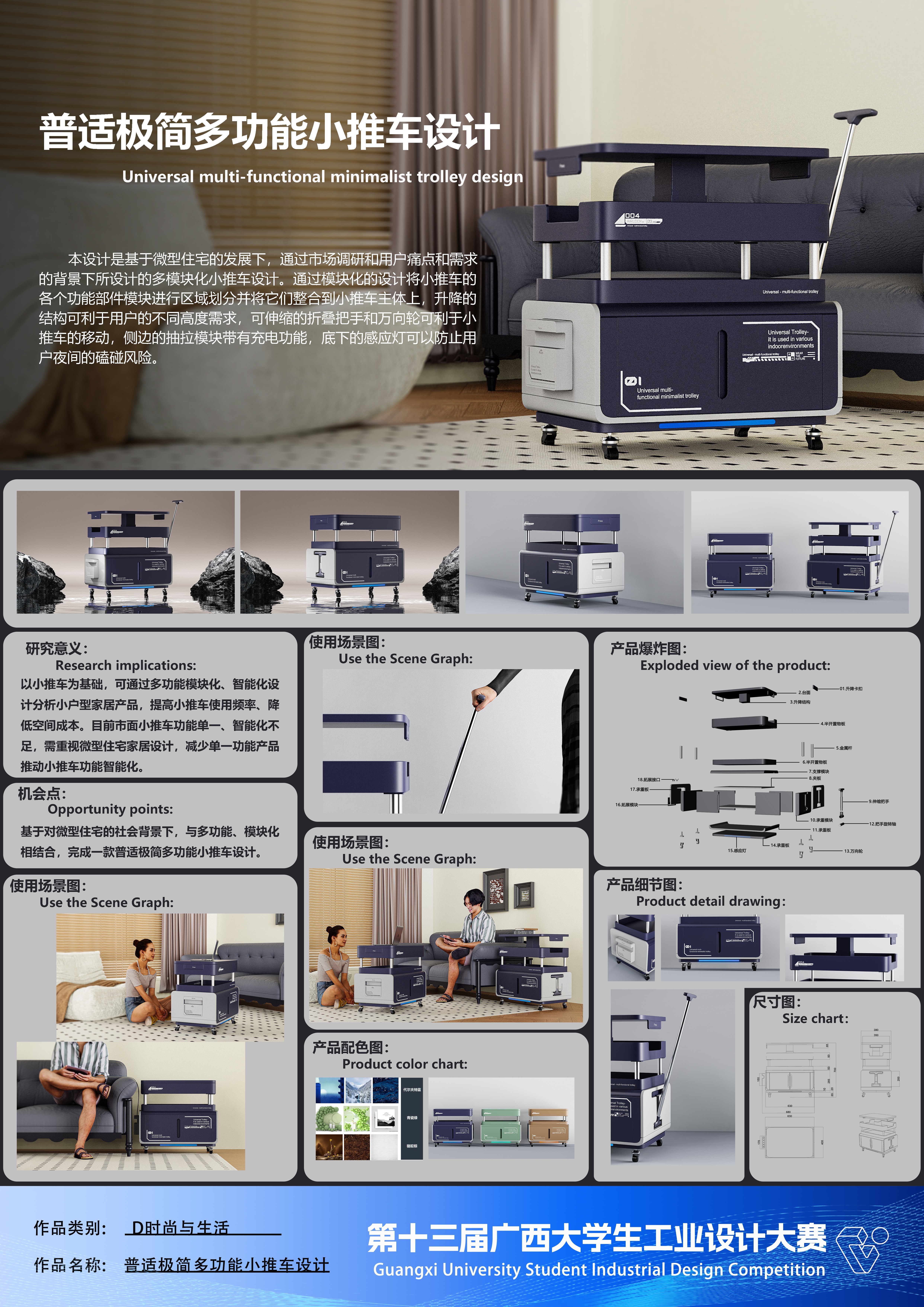 作品名称:普适极简多功能小推车设计    作者:张振铭