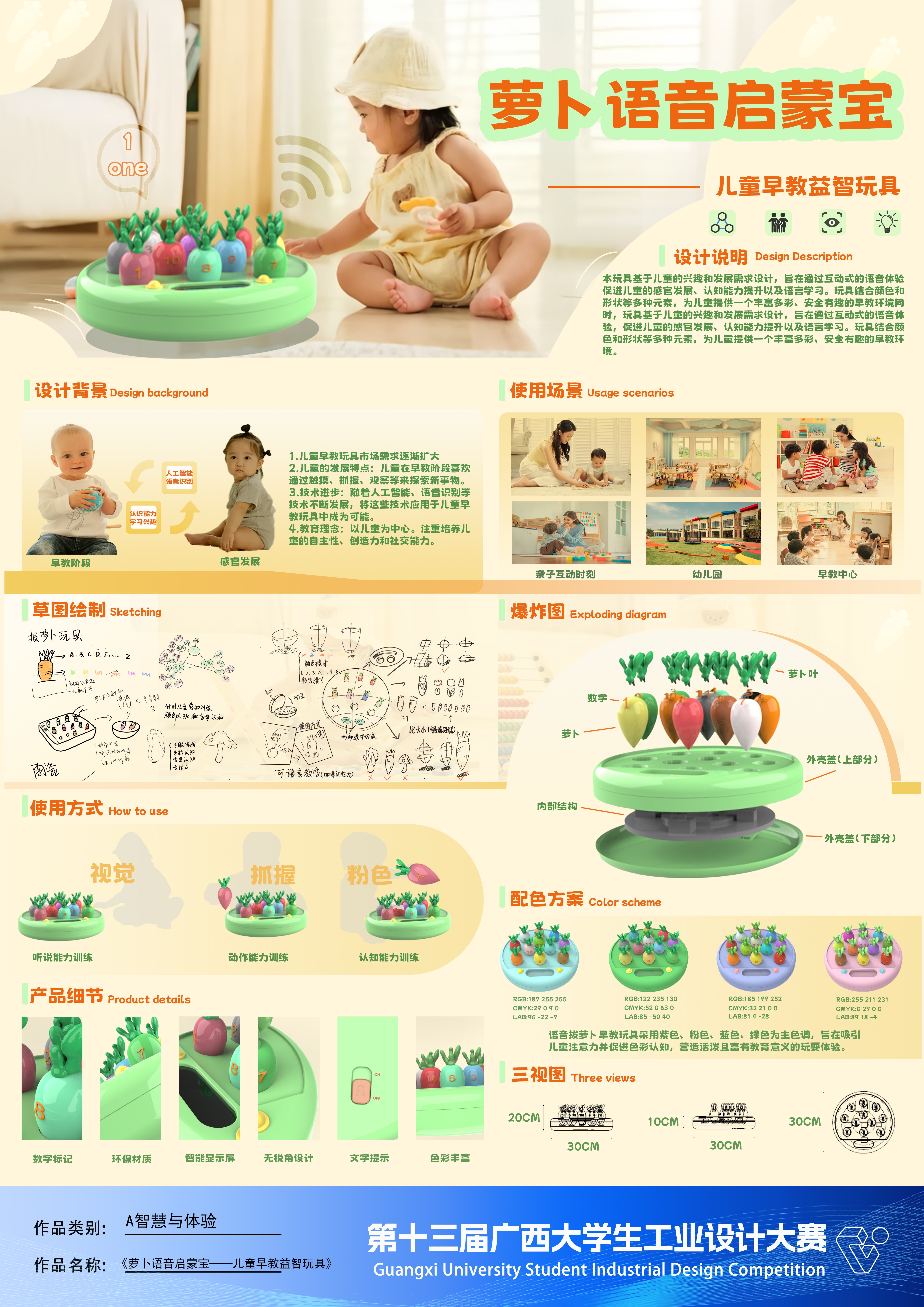 作品名称:萝卜语音启蒙宝——儿童早教益智玩具    作者:李碧瑶、钟雨、赵时榕