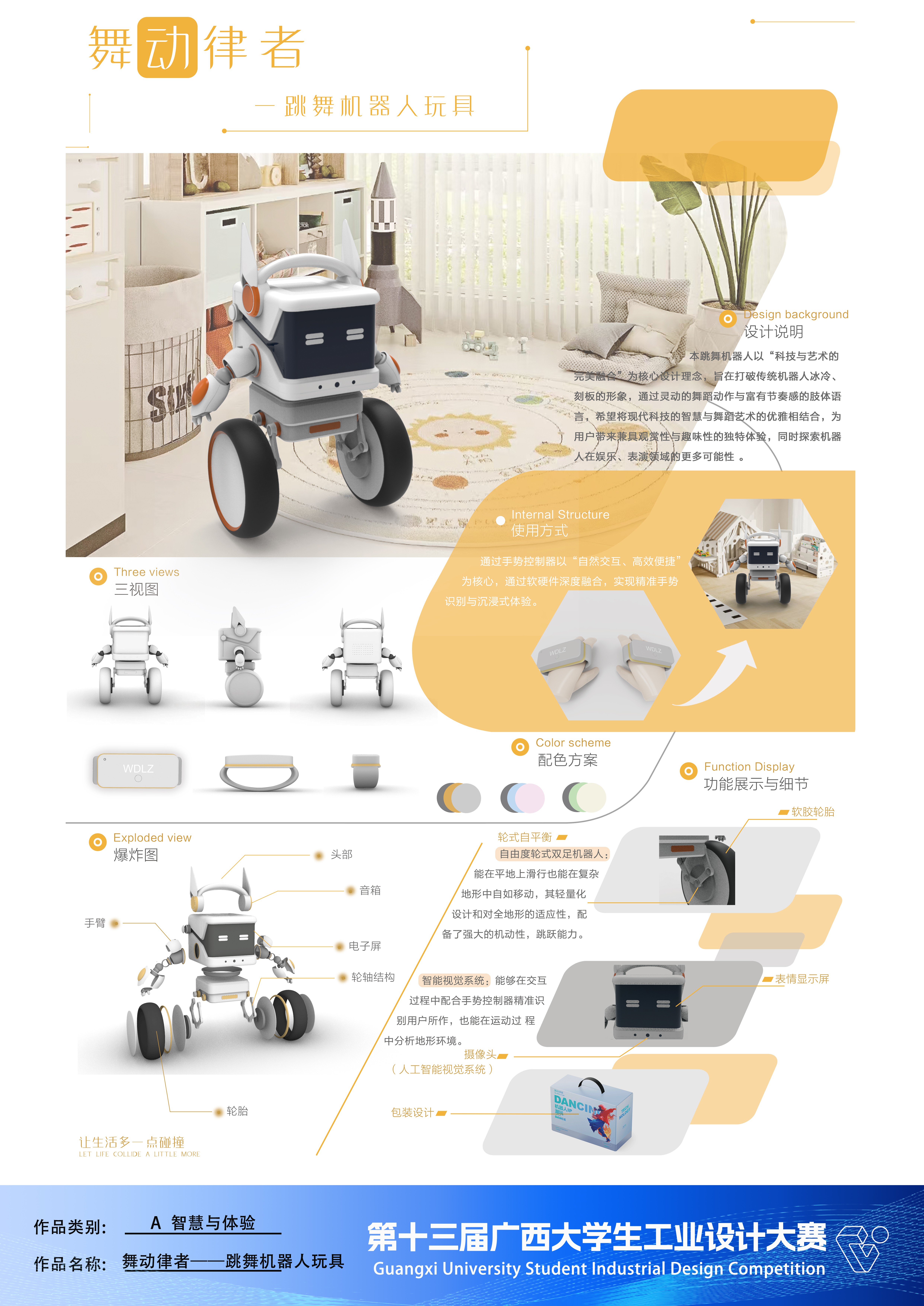 作品名称:舞动律者——跳舞机器人玩具    作者:梁石孔、向晶龙