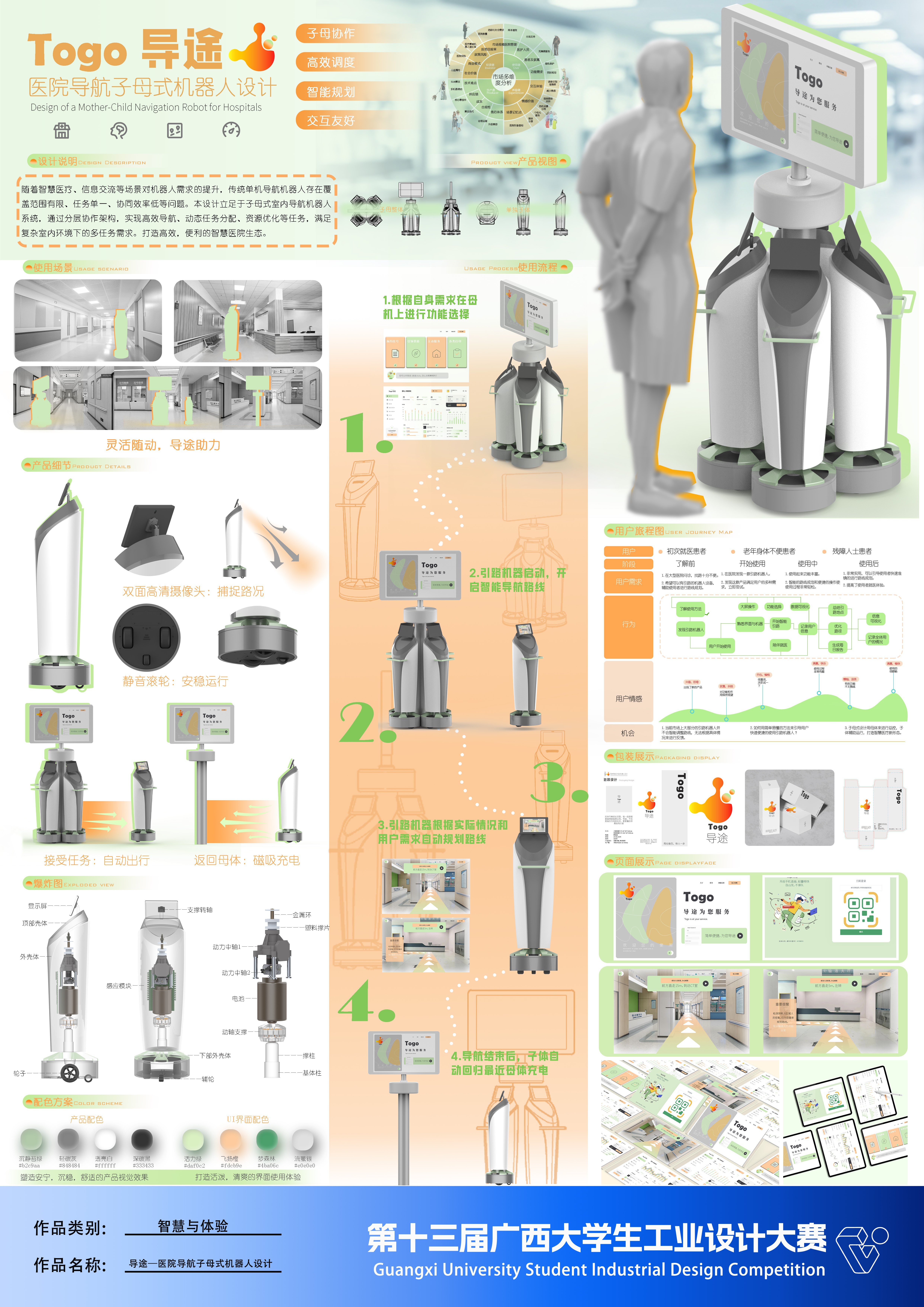 作品名称:导途——医院导航子母式机器人设计    作者:赵时榕,李碧瑶,钟雨